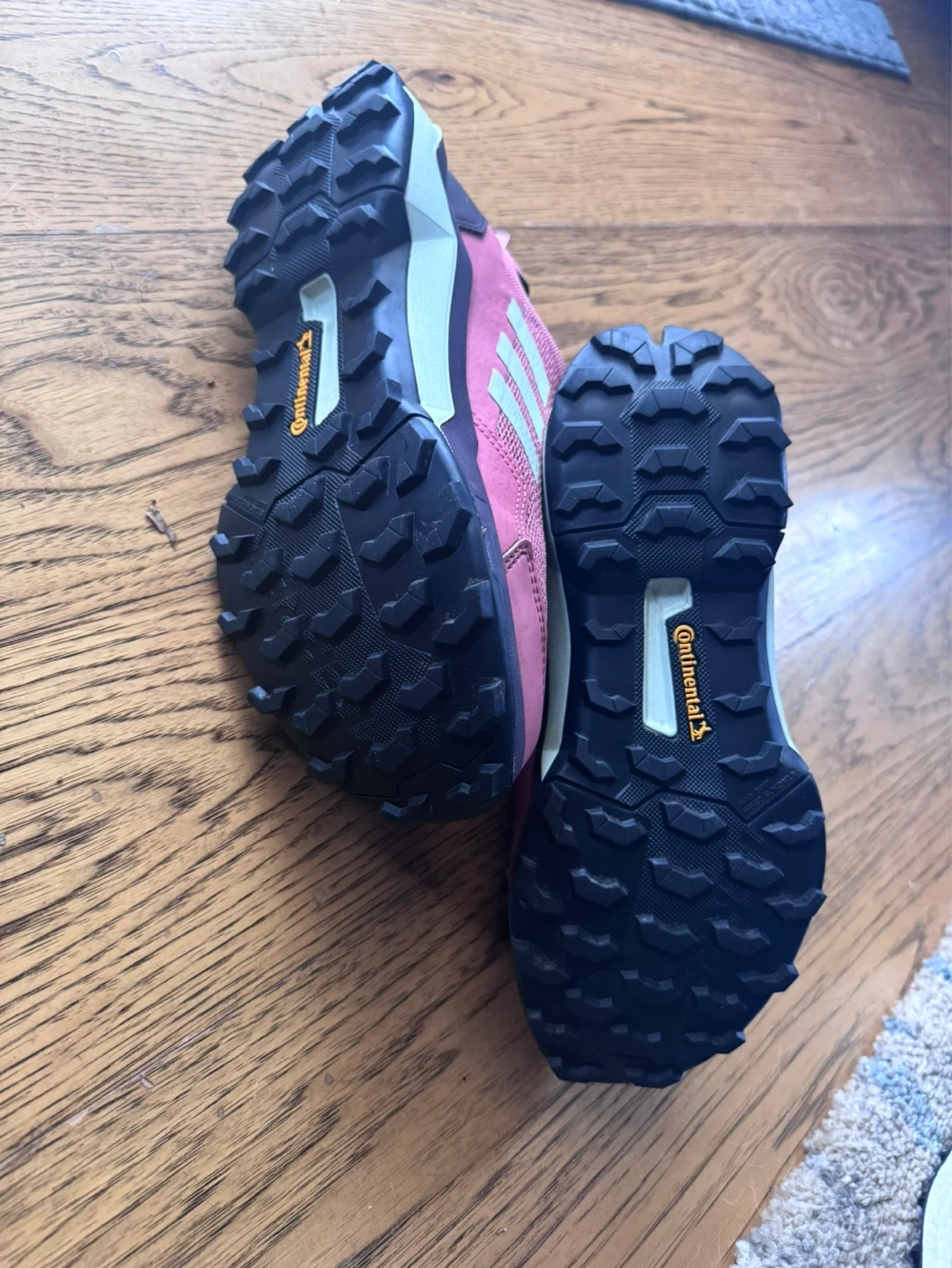 Adidas women's trail running/ hiking shoes in red/ pink. women's size 8. Features Continental rubber outsoles for great grip. They’re amazing shoes but are just a little big for me.