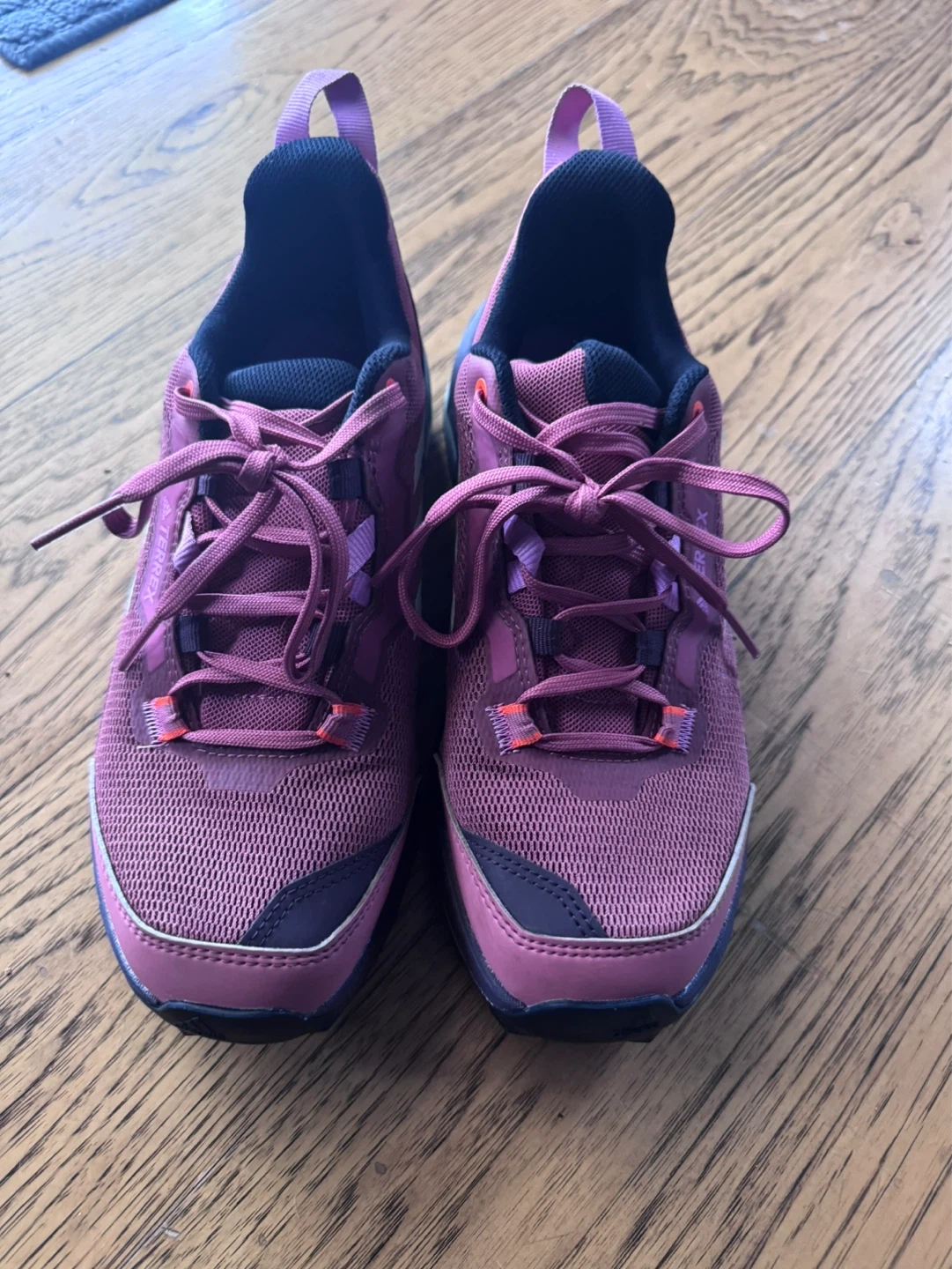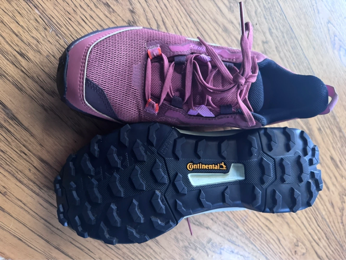 Adidas women's trail running/ hiking shoes in red/ pink. women's size 8. Features Continental rubber outsoles for great grip. They’re amazing shoes but are just a little big for me.