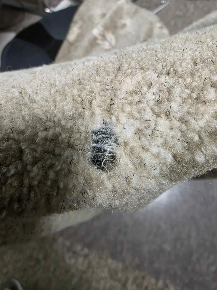 Beige with Leaves Berber Fleece Fabric. .65 of a meter. 64" wide. New but has a couple of small holes as per photos. Lots of usable fabric. Polyester or a poly blend. Smoke/pet free home. Pick up in west of Peterborough. $5