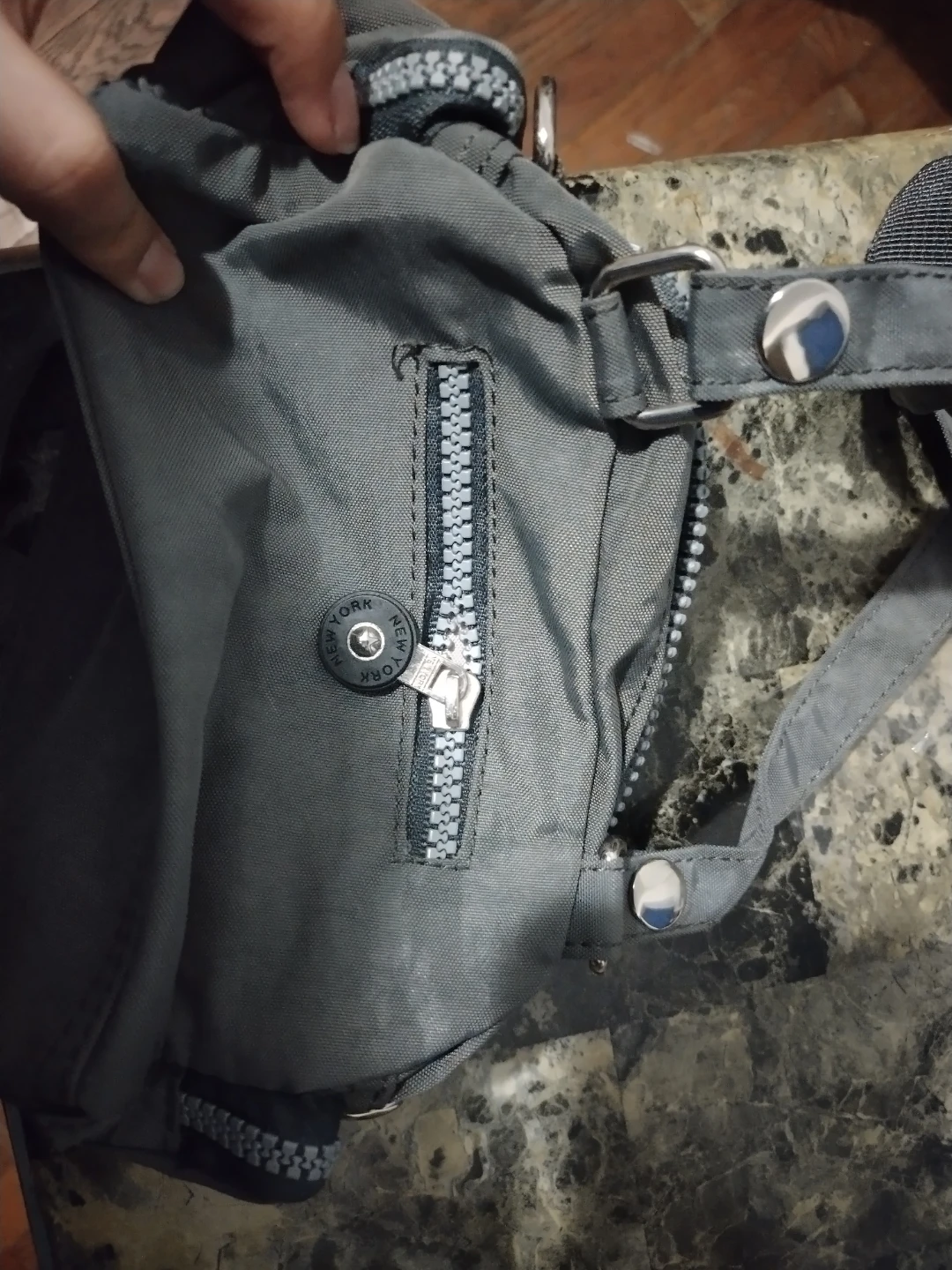 Here's a cute New York handbag in a stylish gray color! It features multiple zippers and compartments, perfect for keeping your belongings organized. The bag also comes with a convenient shoulder strap for easy carrying. It's a great accessory for any outfit!