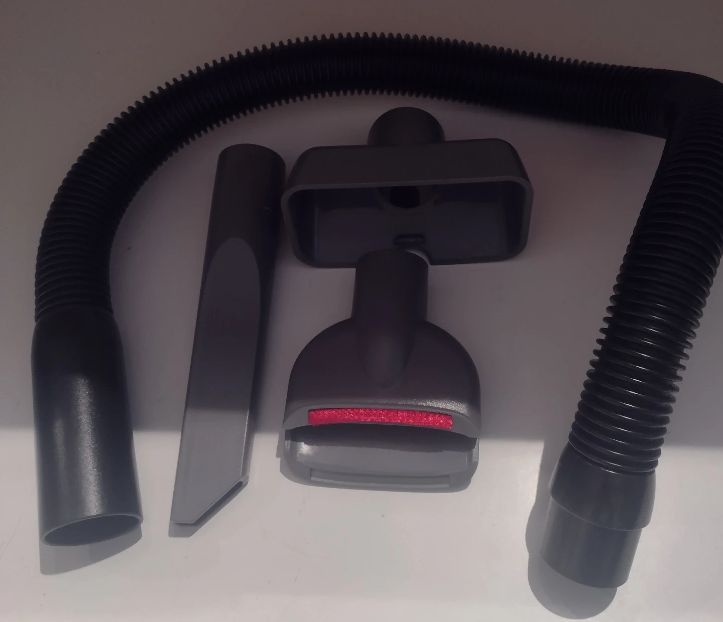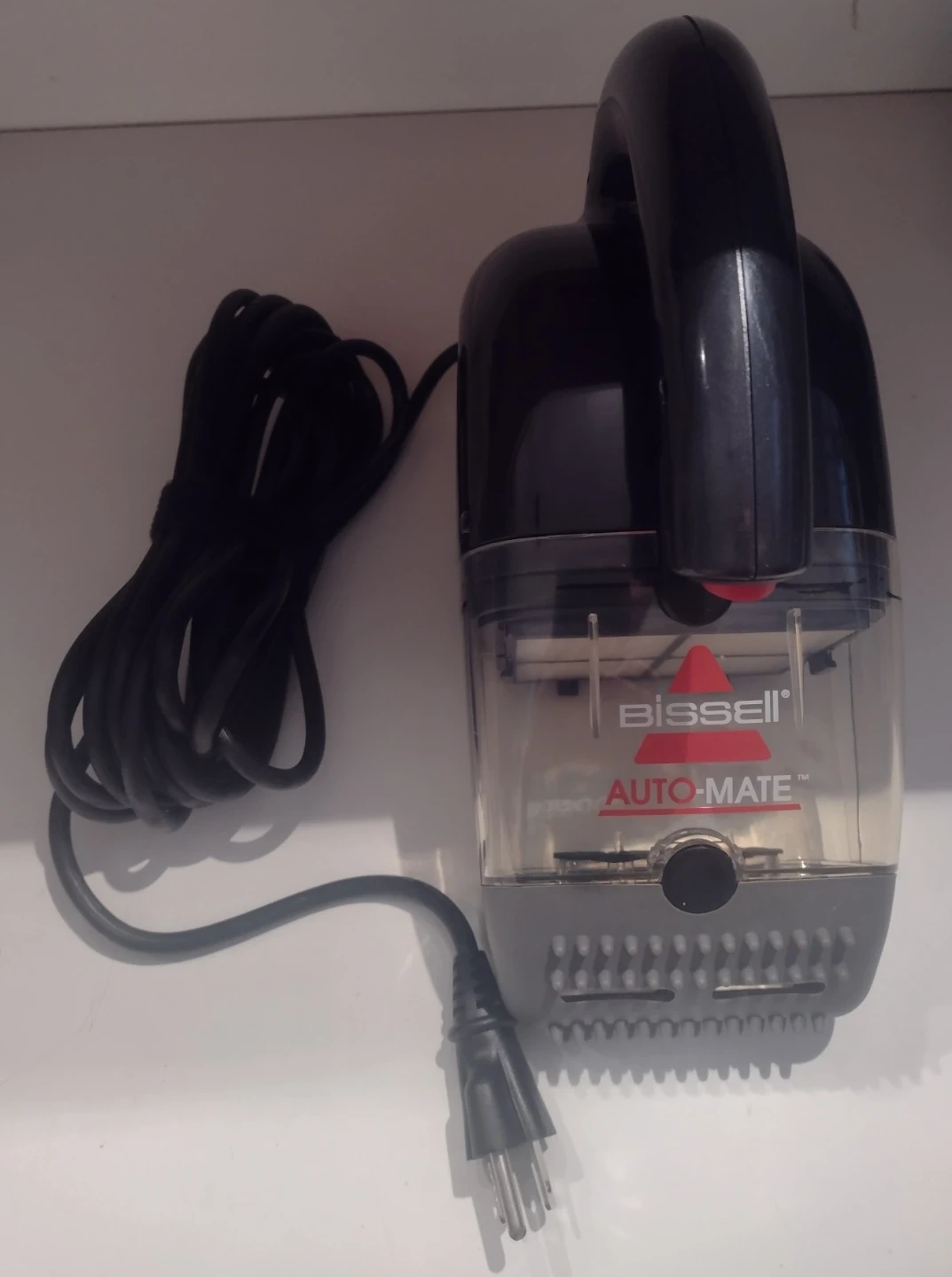 BISSELL Auto-Mate corded hand vacuum for quick cleanups. It comes with a 18ft power cord, flexible rubber nozzle, crevice tool, hose, and adapter. Perfect for tight spaces and quick spills! Brand new as it has never been used.