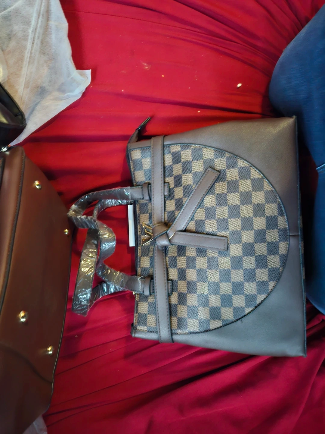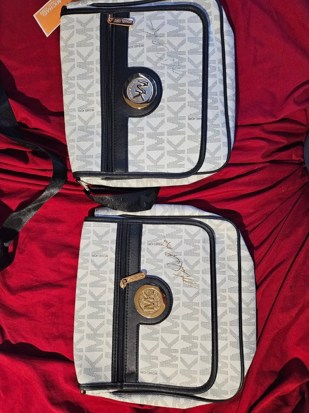 A collection of Michael Kors handbags in various styles and colours. Includes tote bags and crossbody styles. Some bags feature the signature MK pattern with gold-tone hardware.