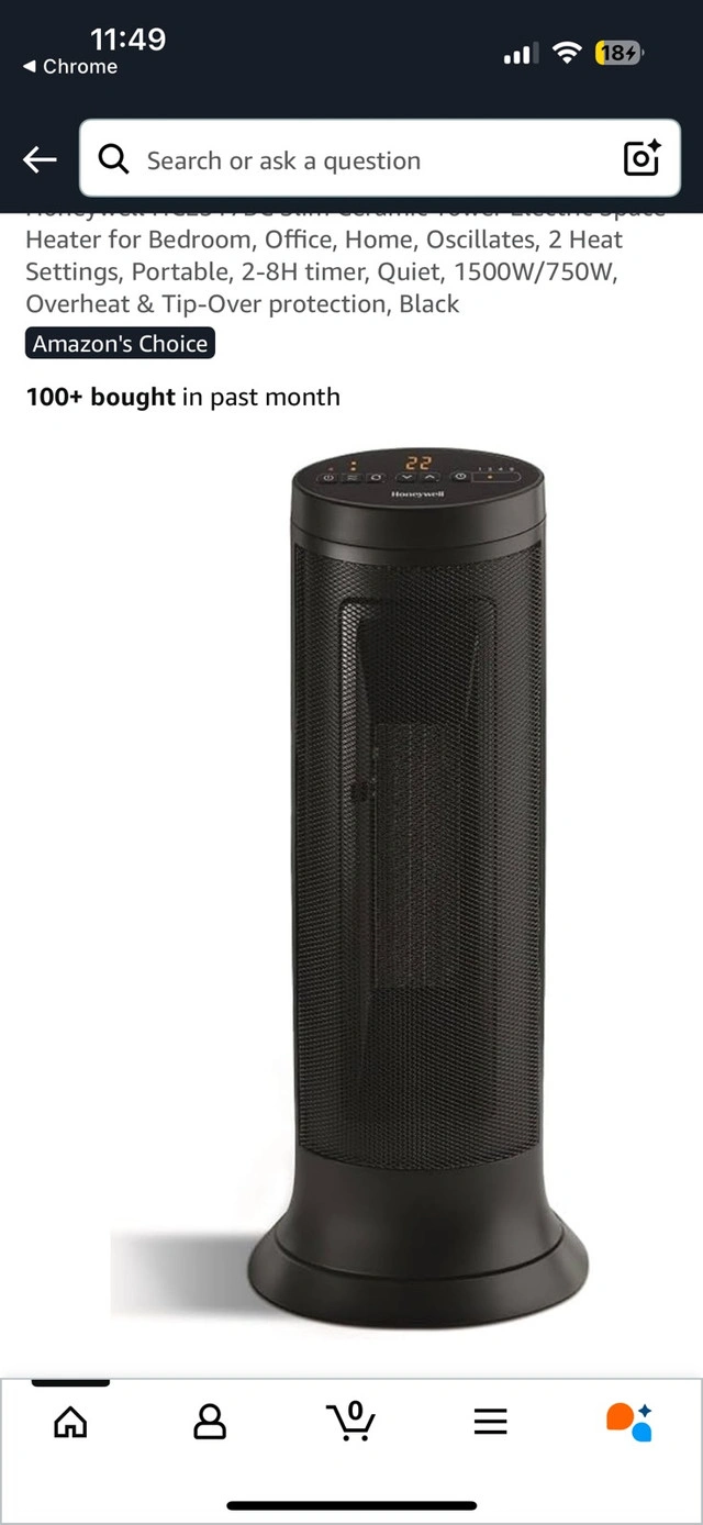 Honeywell HCE317BC Slim Ceramic Tower Electric Space Heater for Bedroom, Office, Home, Oscillates, 2 Heat Settings, Portable, 2-8H timer, Quiet, 1500W/750W, Overheat & Tip-Over protection, Black Selling as no longer need. In great condition. Open to offers