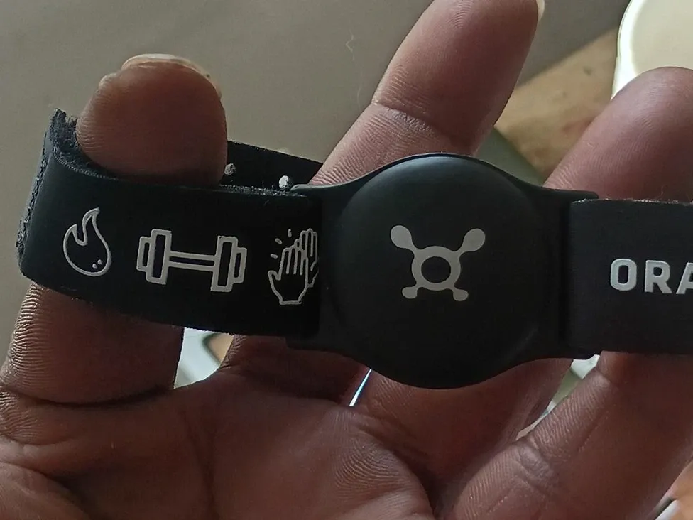 This is an OrangeTheory Otbeat Burn fitness tracker. It's a wearable device for monitoring workouts. It tracks heart rate and other key metrics during exercise sessions.