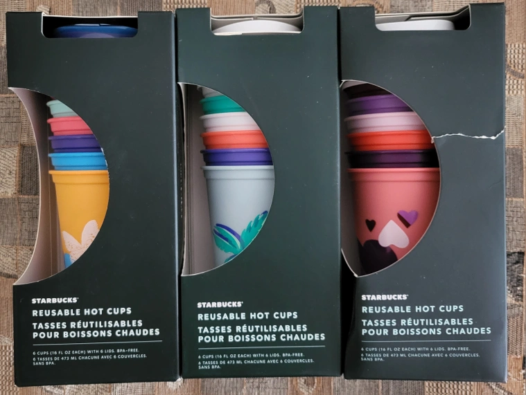 I am selling these 3 sets of Starbucks Reusable Hot cups (Easter, Summer and Valentines). Unused and New. With SKU stickers. For local pick-up. Cash only.