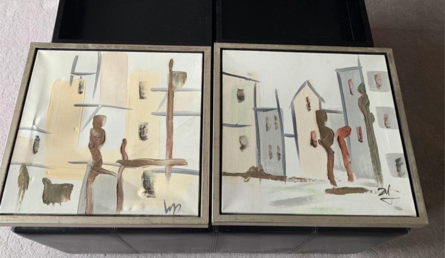 Set of 2 Framed Abstract Cityscape Paintings