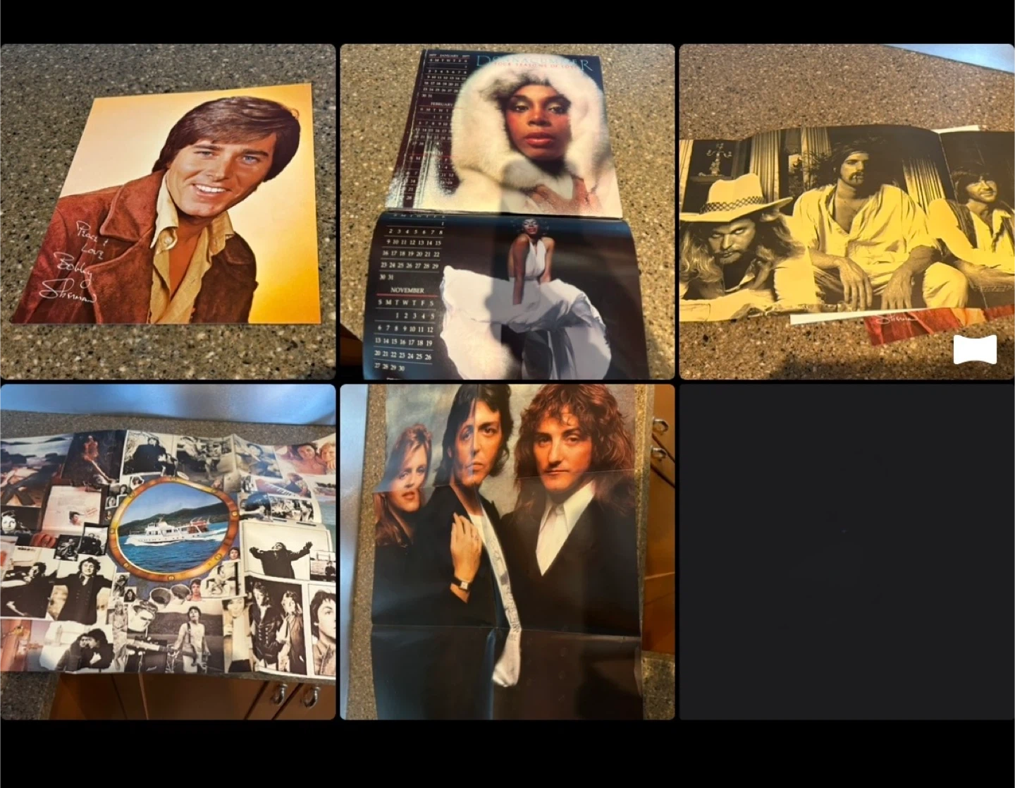 of vintage music posters and prints featuring iconic artists from the 1970s–1980s era. Great for collectors, retro decor, or a music-themed space.