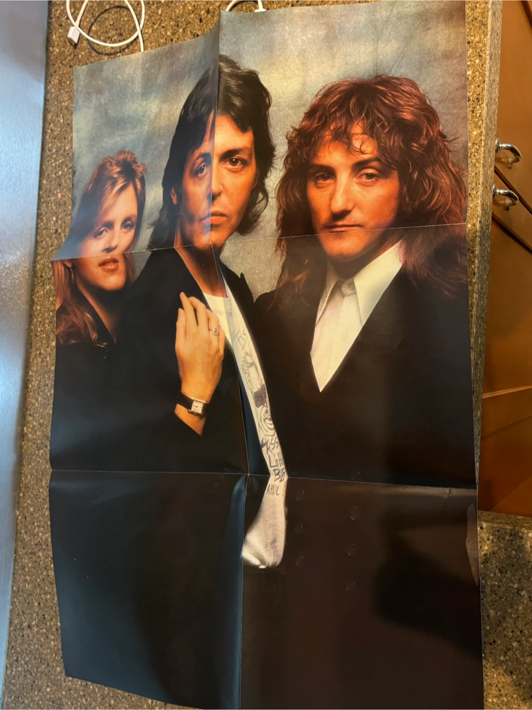 • Wings (Paul McCartney, Linda McCartney, Denny Laine) large double-sided fold-out poster