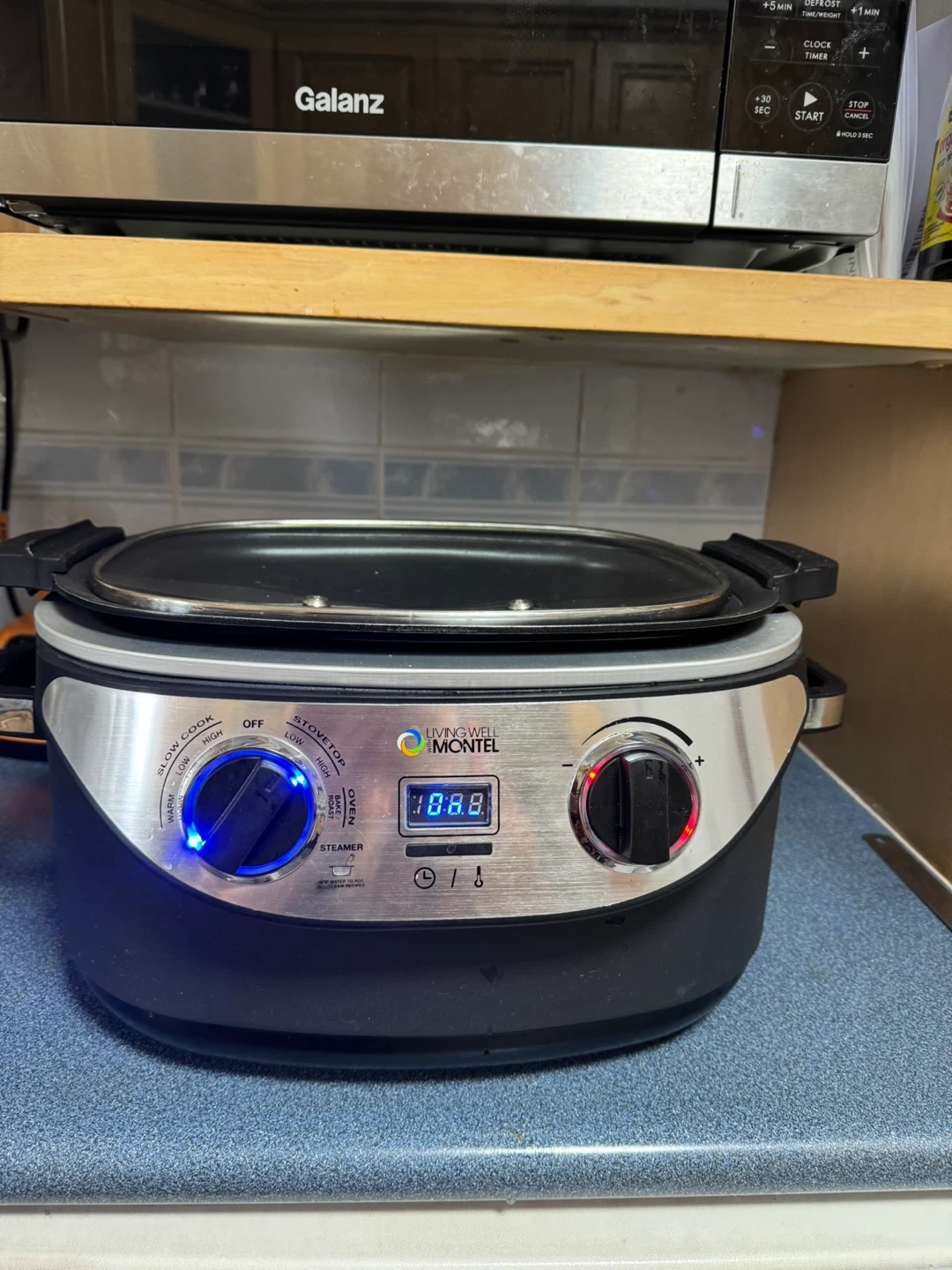 This Montel Pro Plus 6-in-1 multi cooker can be used as a slow cooker, steamer, and has sautƩ and browning modes. It's also great for cooking rice. Comes with a recipe book.