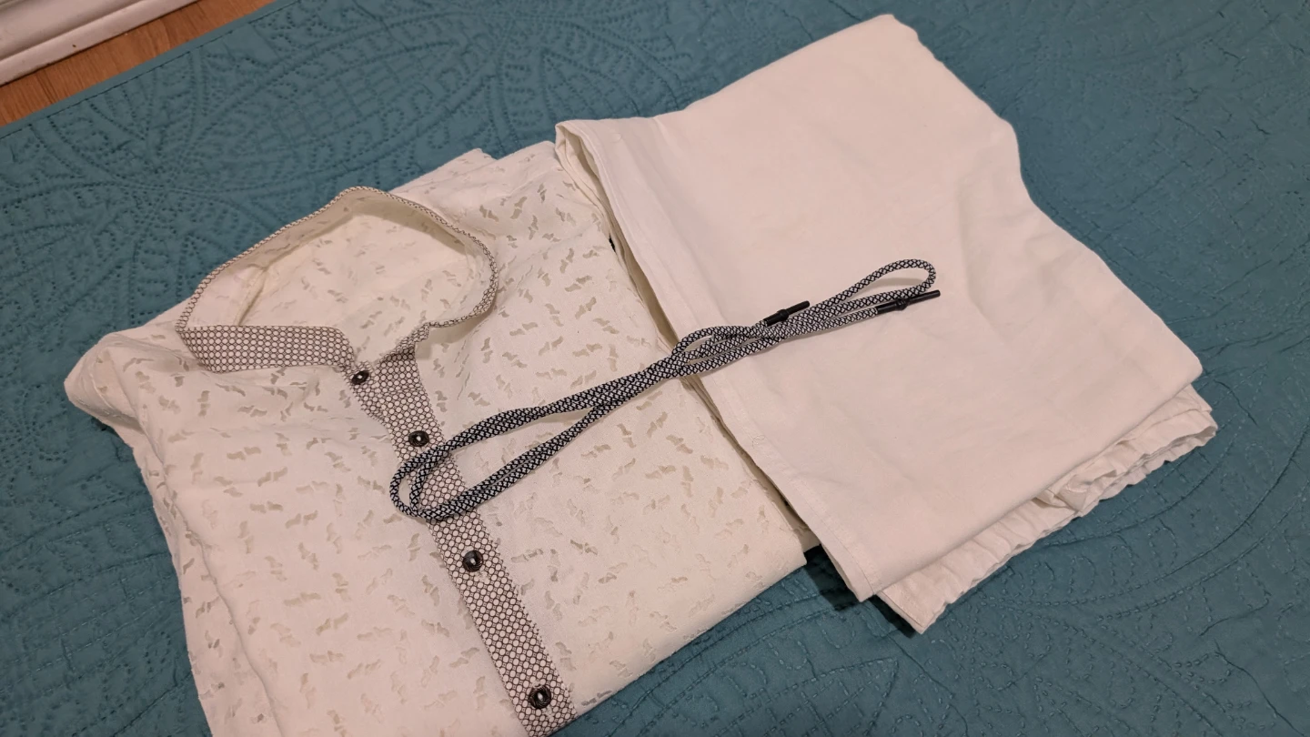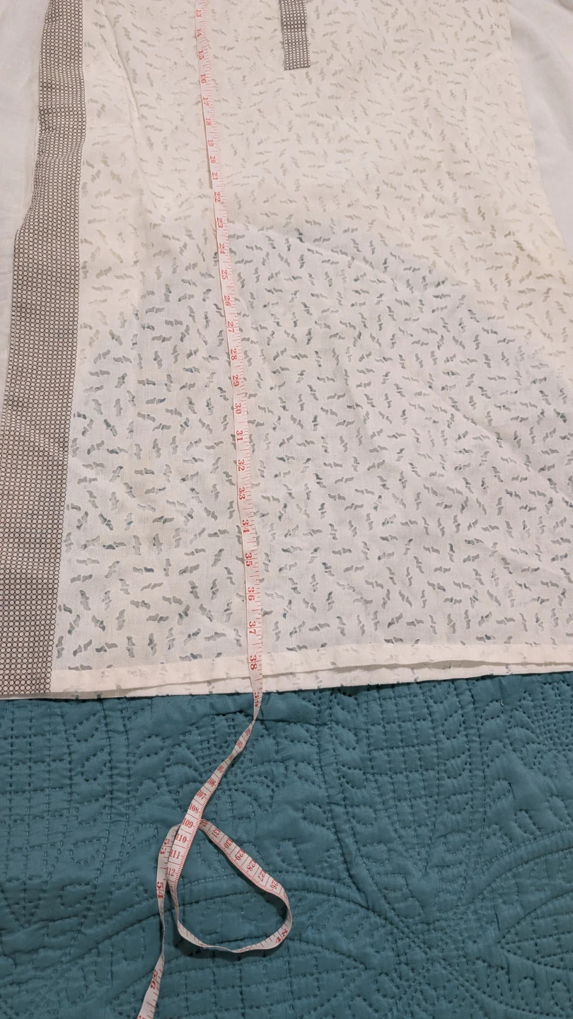 Here's a lovely white kurta pajama set! The kurta measures approximately 38 inches in length. Perfect for a relaxed and stylish look! Used once.