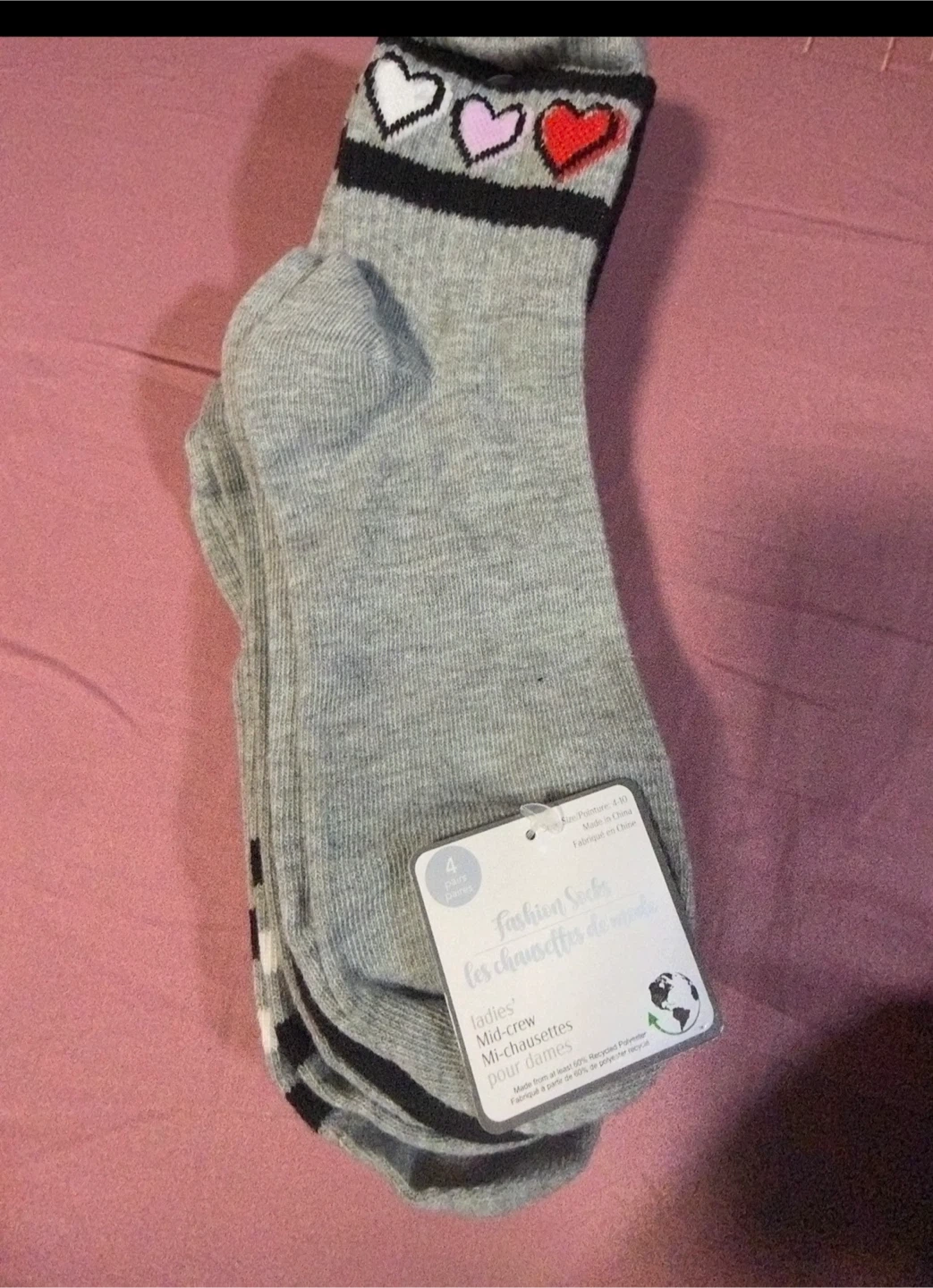 Buy & SellLadies' Mid-Crew Fashion SocksLadies' Mid-Crew Fashion Socks$8Grey ladies' mid-crew fashion socks with heart detail. Four pairs included. Made with 95% recycled polyester.Size4-10WHERE TO MEETNew BrightonView MapSELLERKbzySoutheast Calgary271 review0 chats·0 favorites·4 viewsSEND CHAT TO SELLERHi Kbzy! I’m interested in your listing.Hi Kbzy! I’m interested in your listing.Get the Karrot app to chatSign In to chat