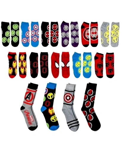 MARVEL 15 DAYS OF SOCKS MENS SHOE SIZE 6-12 4 PAIRS OF CREW SOCKS AND 11 PAIRS OF LOW CUT SOCKS MADE WITH 97% POLYESTER AND 3 % SPANDEX MACHINE WASHABLE Brand new.