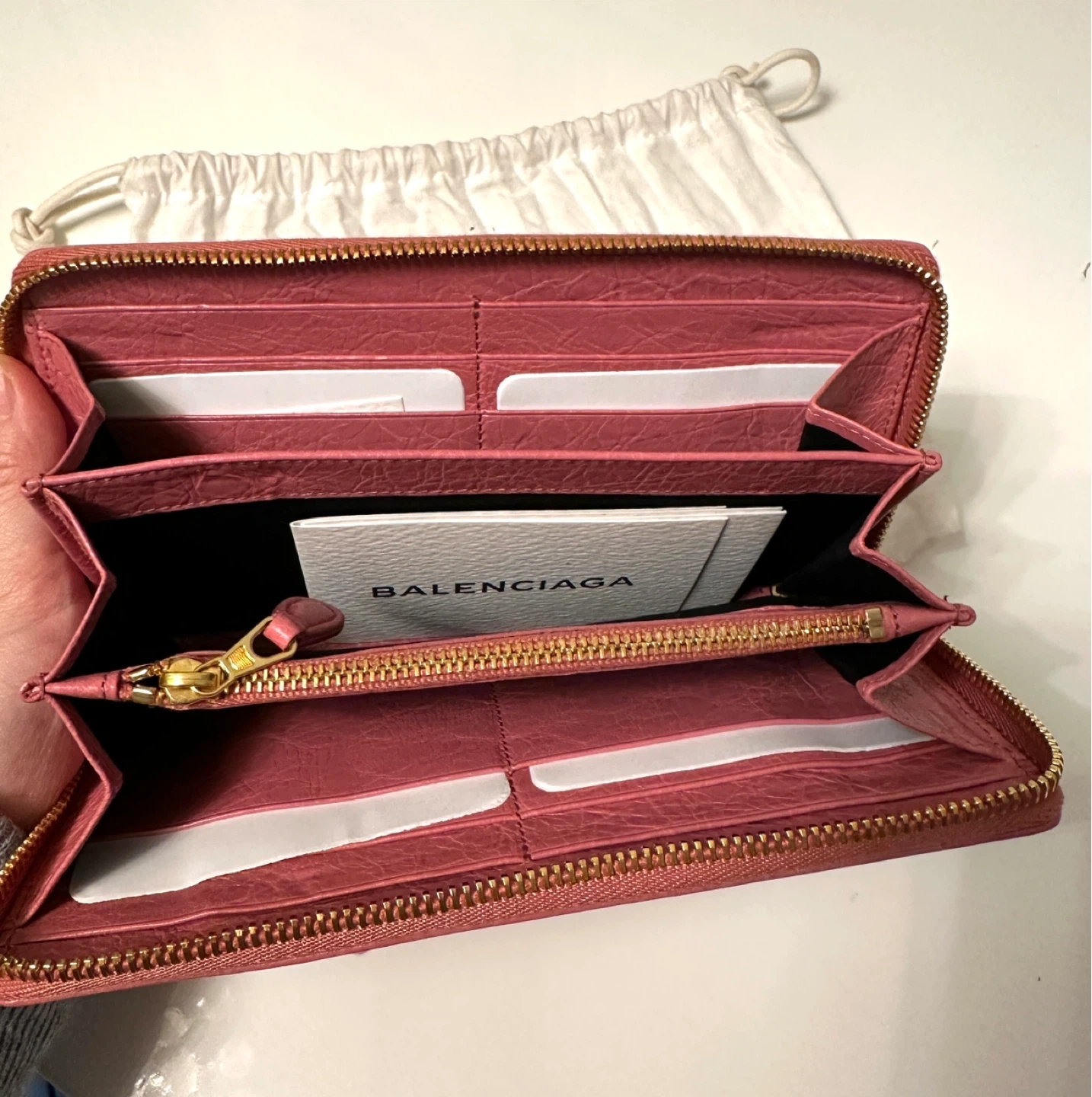Selling a lovely Balenciaga wallet in pink leather. It comes with its original dust bag. It's in great condition and ready for a new home!