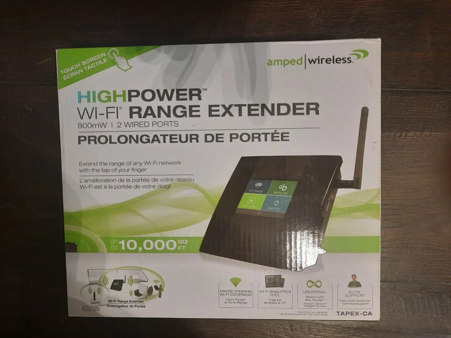 This Amped Wireless HighPower Wi-Fi Range Extender boasts 800mW power with 2 wired ports. It's designed to extend your Wi-Fi network up to 10,000 sq ft! Its touch screen interface makes setup a breeze.