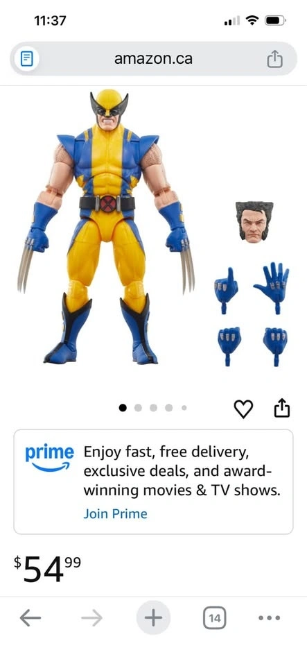 6-inch scale collectible action figure by Hasbro. Fully articulated figure celebrating Marvel's 85th anniversary. Includes 6 accessories, featuring two alternate heads (one masked, one unmasked) and multiple sets of hands. Comes in branded Marvel Legends Series packaging with a "Celebrating 85 Years" logo. Sells for $55 on Amazon.ca.