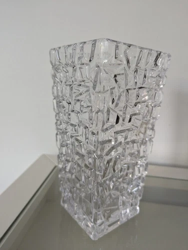 Immerse your space in timeless elegance with this Tiffany & Co. Crystal Vase from the Sierra Collection. Featuring a striking square rock cut design, this 9.5-inch vase exudes sophistication and luxury. Made in Germany from high-quality crystal, this piece is a true statement of craftsmanship and style. Add a touch of class to any room with this exquisite vase, perfect for displaying your favorite flowers or standing alone as a stunning decorative piece.