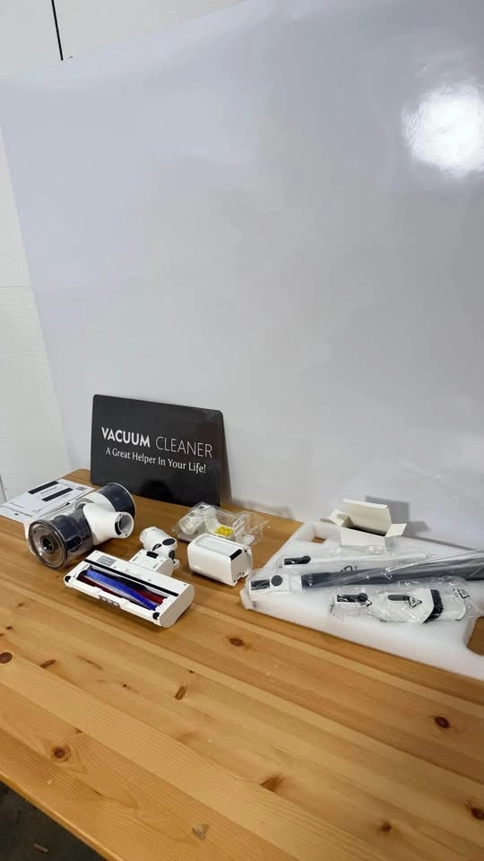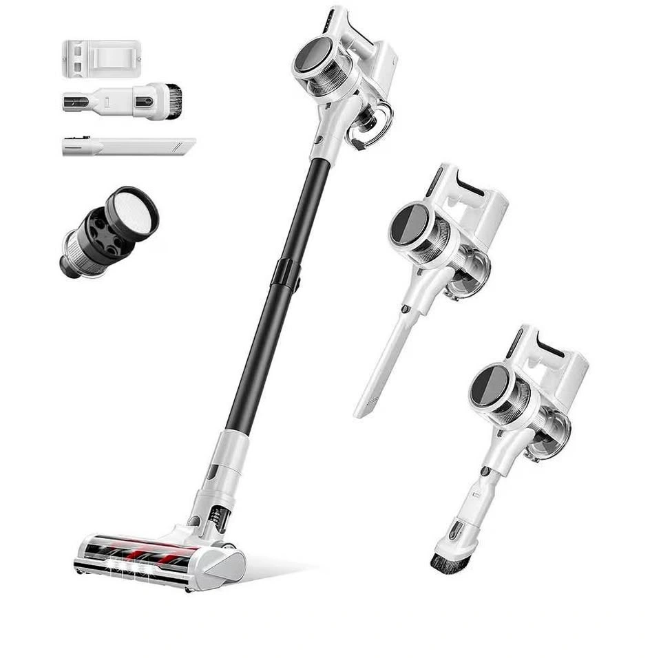 New cordless vacuum cleaner with a powerful 80,000PRM motor. Lightweight and easy to use for daily home cleaning. Features 2 adjustable power modes, a 2200mAh rechargeable battery, and up to 35 minutes of runtime. Cordless and lightweight design in a modern Stone White / Gray color. Perfect for condos, apartments, hardwood floors, and carpets.