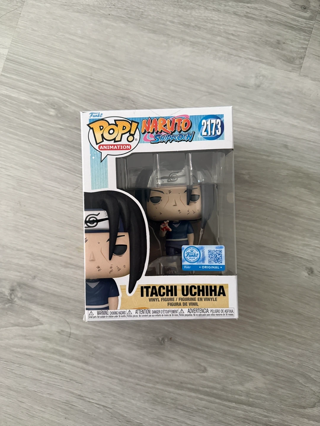 This is the Funko Pop! Animation vinyl figure of Itachi Uchiha, number 2173, from the Naruto Shippuden series. It's made of vinyl. This collectible figure is for fans of the anime series.