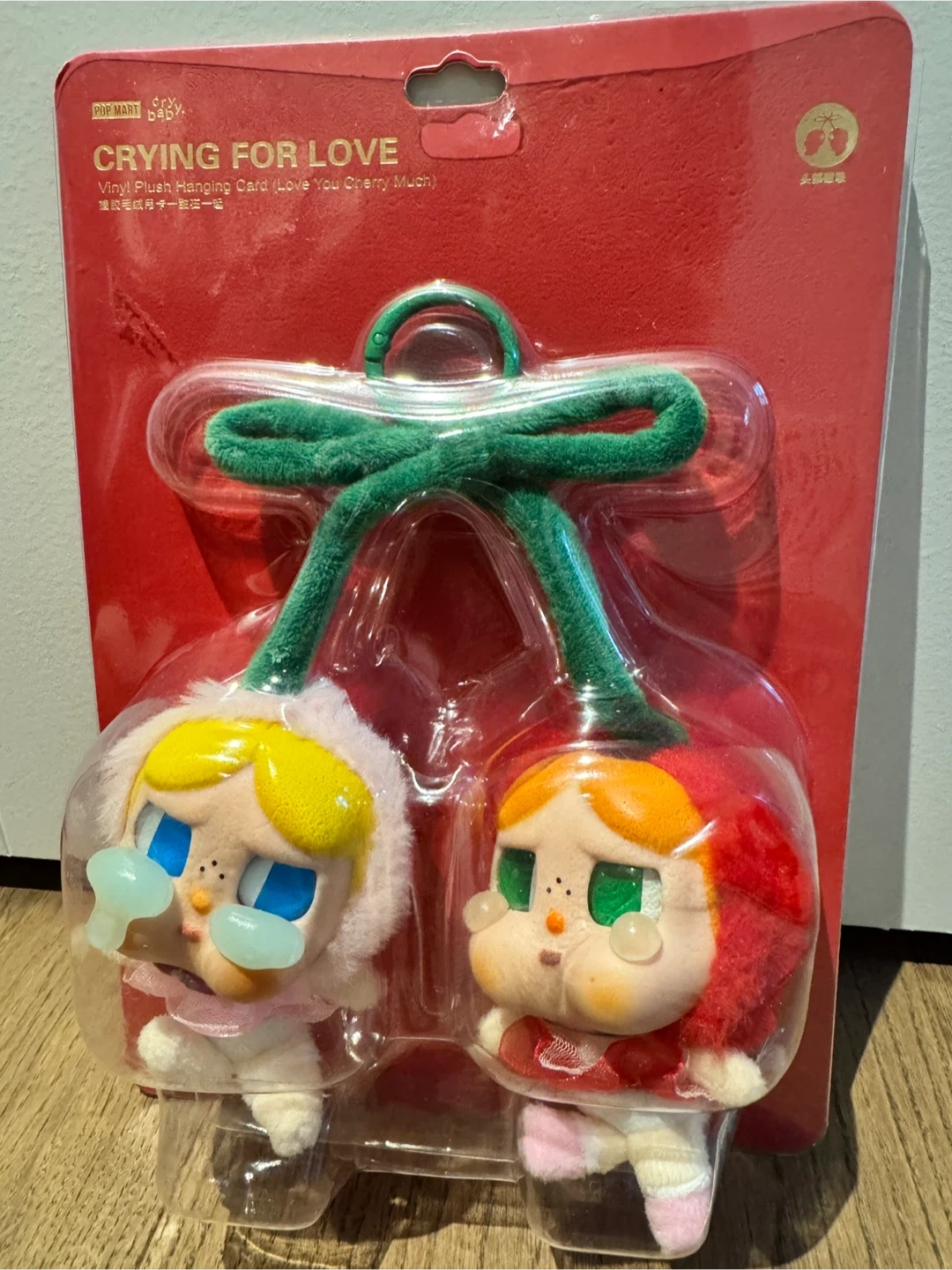 Selling a super cute Pop Mart inspired Crybaby Crying Faux Love Vinyl Plush Hanging Card (Love You Cherry Much)! This adorable plush is brand new and still in its original packaging. It's a must-have for any Crybaby fan