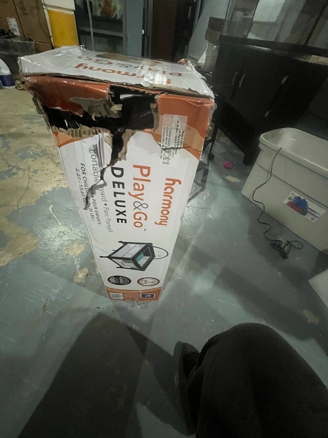 I am selling a Harmony Play and Go Deluxe portable playard in its original packaging. This playard is designed for ease of use and portability, making it perfect for travel or home use. The box has some damage, but the playard itself is brand new and has never been opened or assembled. Features include: Easy setup and takedown, Compact fold for storage and travel, Durable construction, Comfortable mattress pad. Cash accepted.
