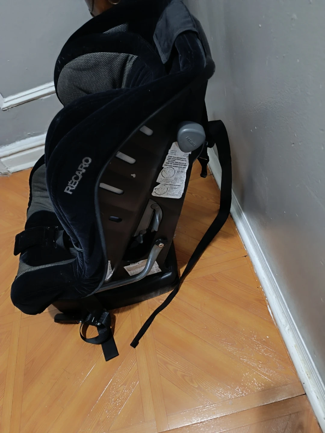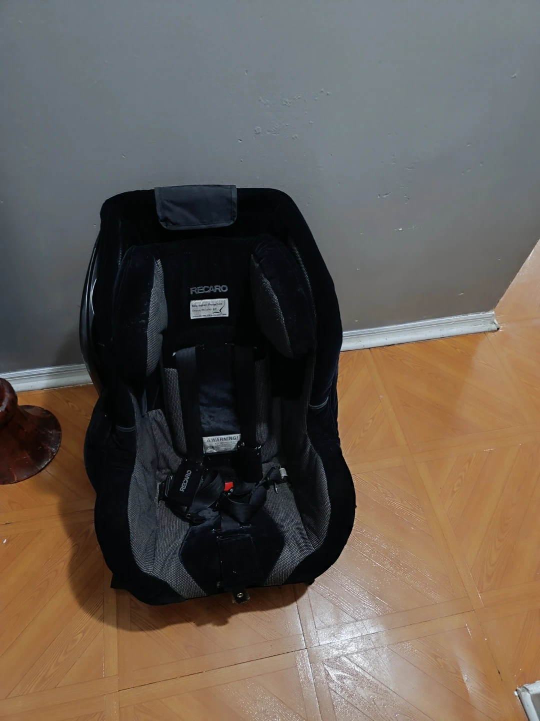 Selling a Recaro child car seat in black. It's in good condition and ready for a new family. Perfect for keeping your little one safe and secure on the road