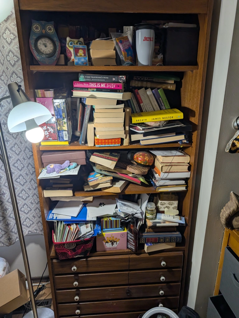 Apologies for the bad picture - the bookshelf is currently holding most of the books I own as I'm in the process of changing around my living room and office.