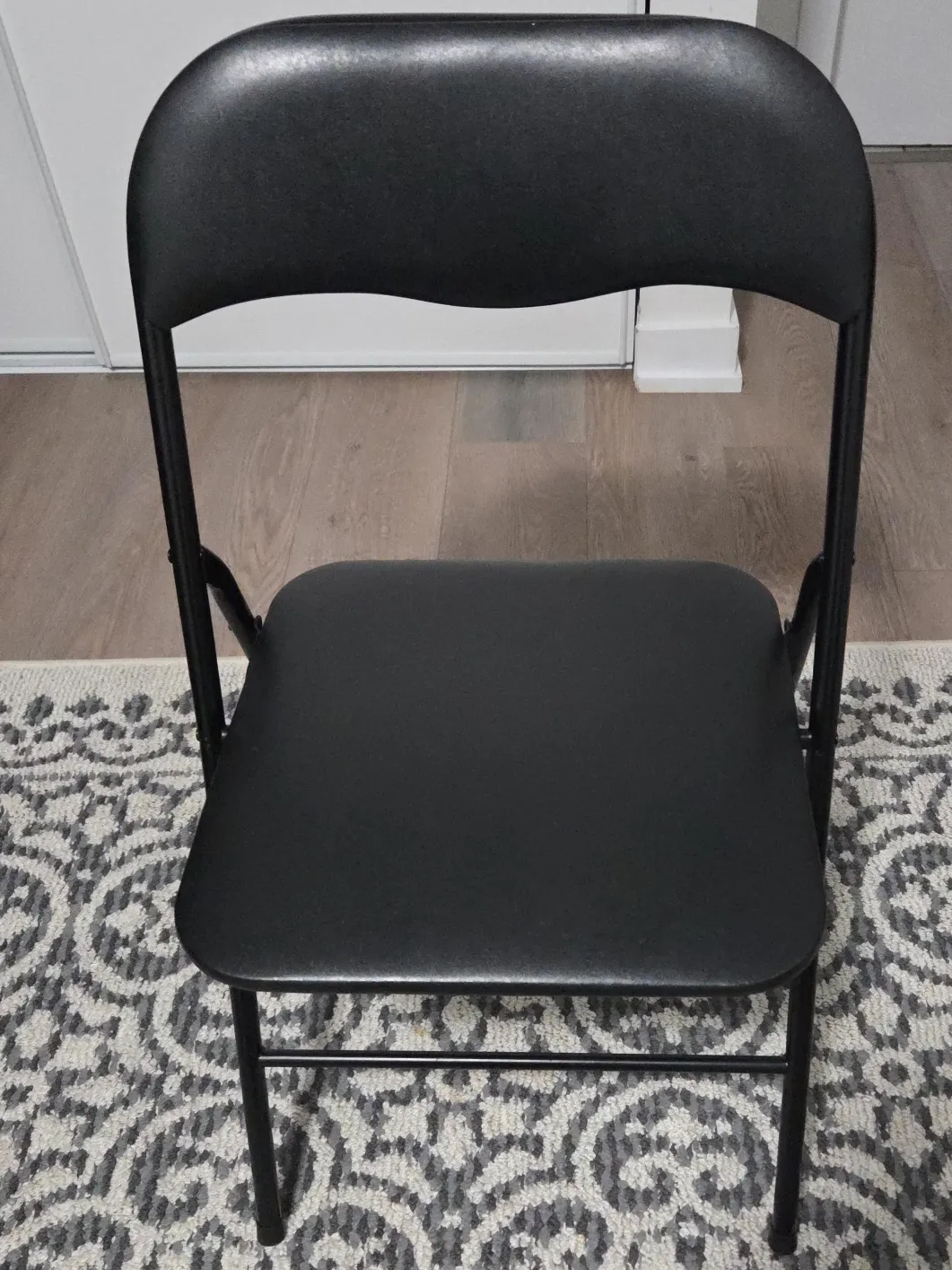 Selling a black folding chair that's in great condition! It's perfect for extra seating when you have guests over or for any event where you need a portable chair.