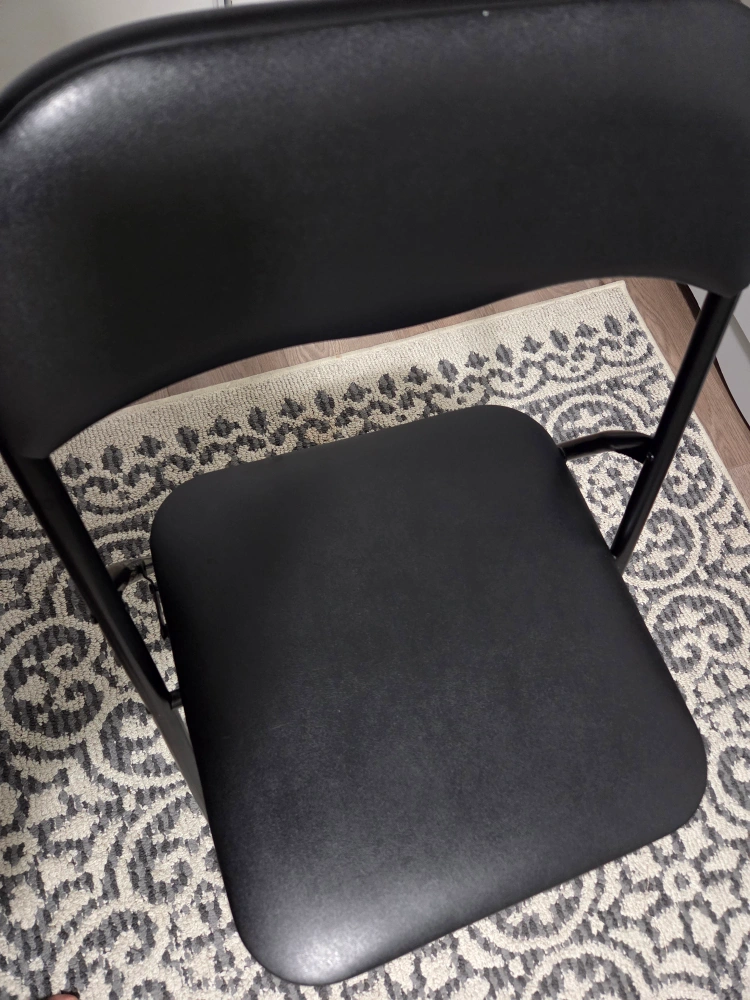 Selling a black folding chair that's in great condition! It's perfect for extra seating when you have guests over or for any event where you need a portable chair.