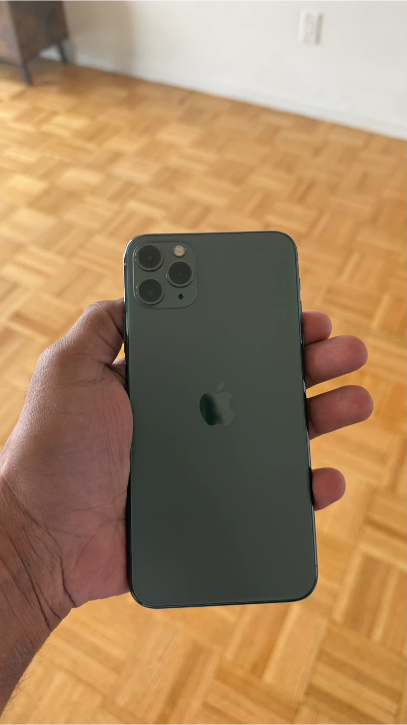 Apple iPhone 11 Pro Max in a Midnight green colour.