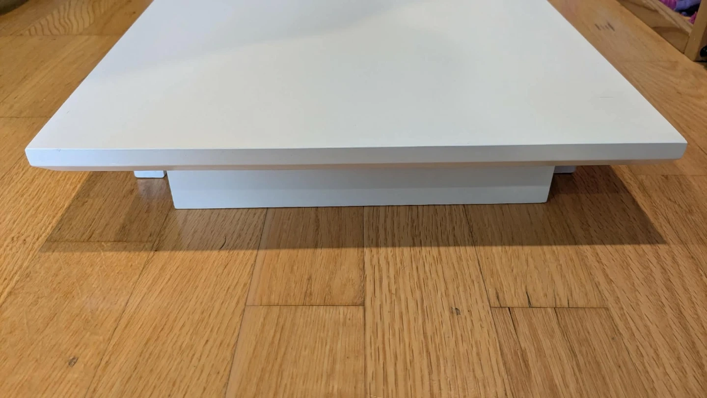 Solid wood table top 14 inches by 16 inches. It's made of solid wood.