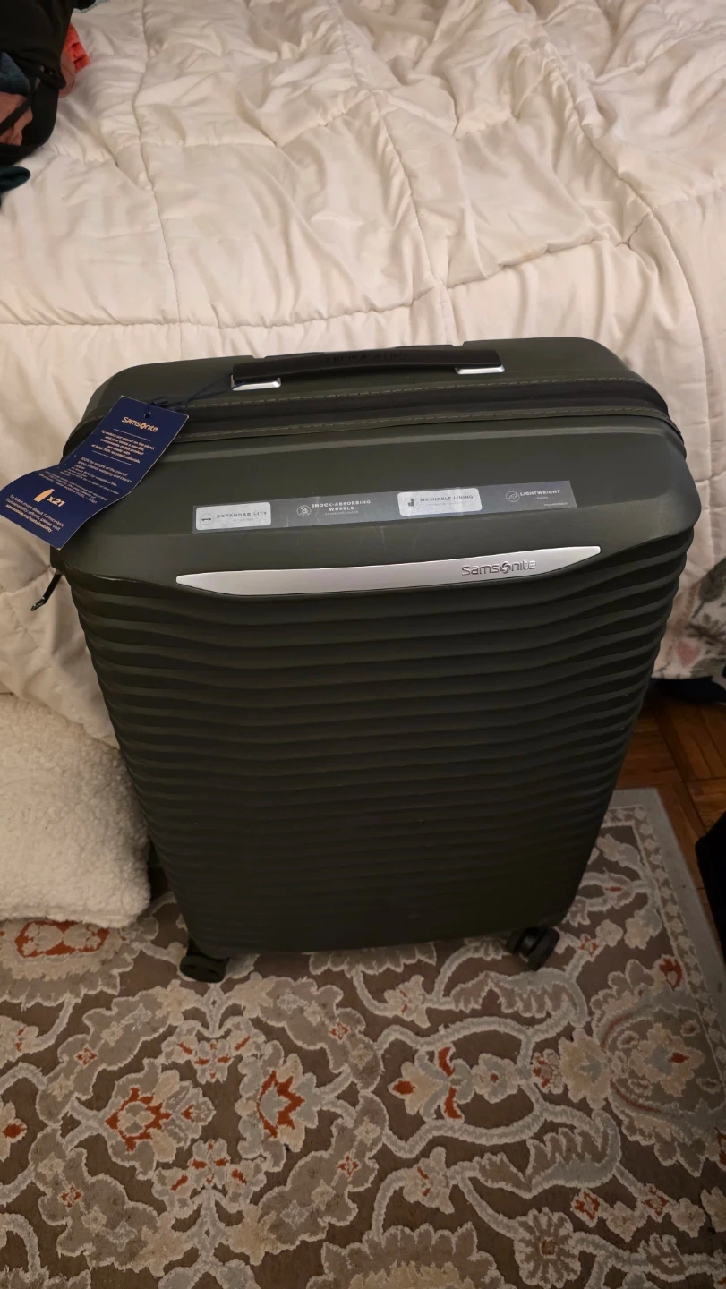 Just bought last month on a trip when I ran out of space, only used once. Still has tags on it. Passcode hasn't been set on the locks yet, so you can set it to whatever you like. Purchased for 6199 CZK or 300 USD.
