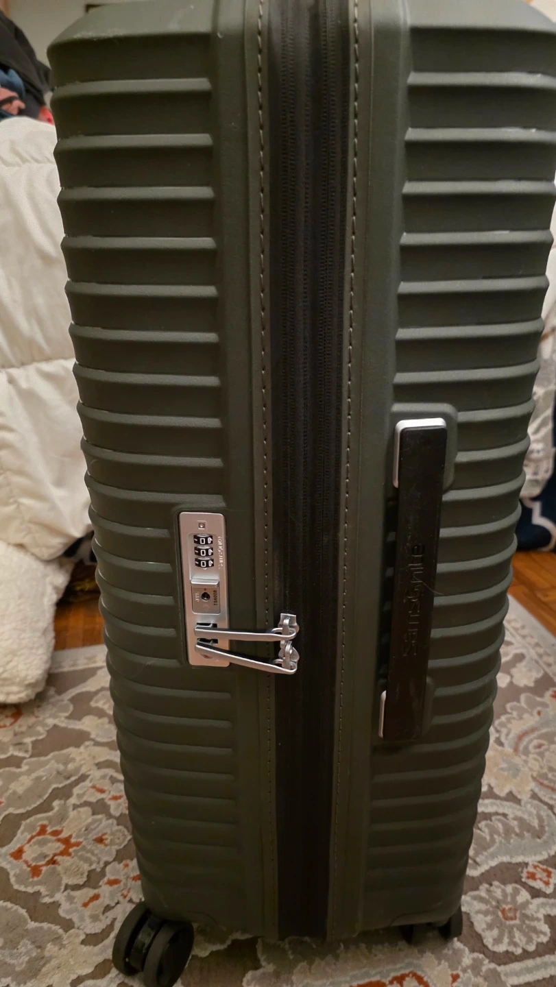 Just bought last month on a trip when I ran out of space, only used once. Still has tags on it. Passcode hasn't been set on the locks yet, so you can set it to whatever you like. Purchased for 6199 CZK or 300 USD.
