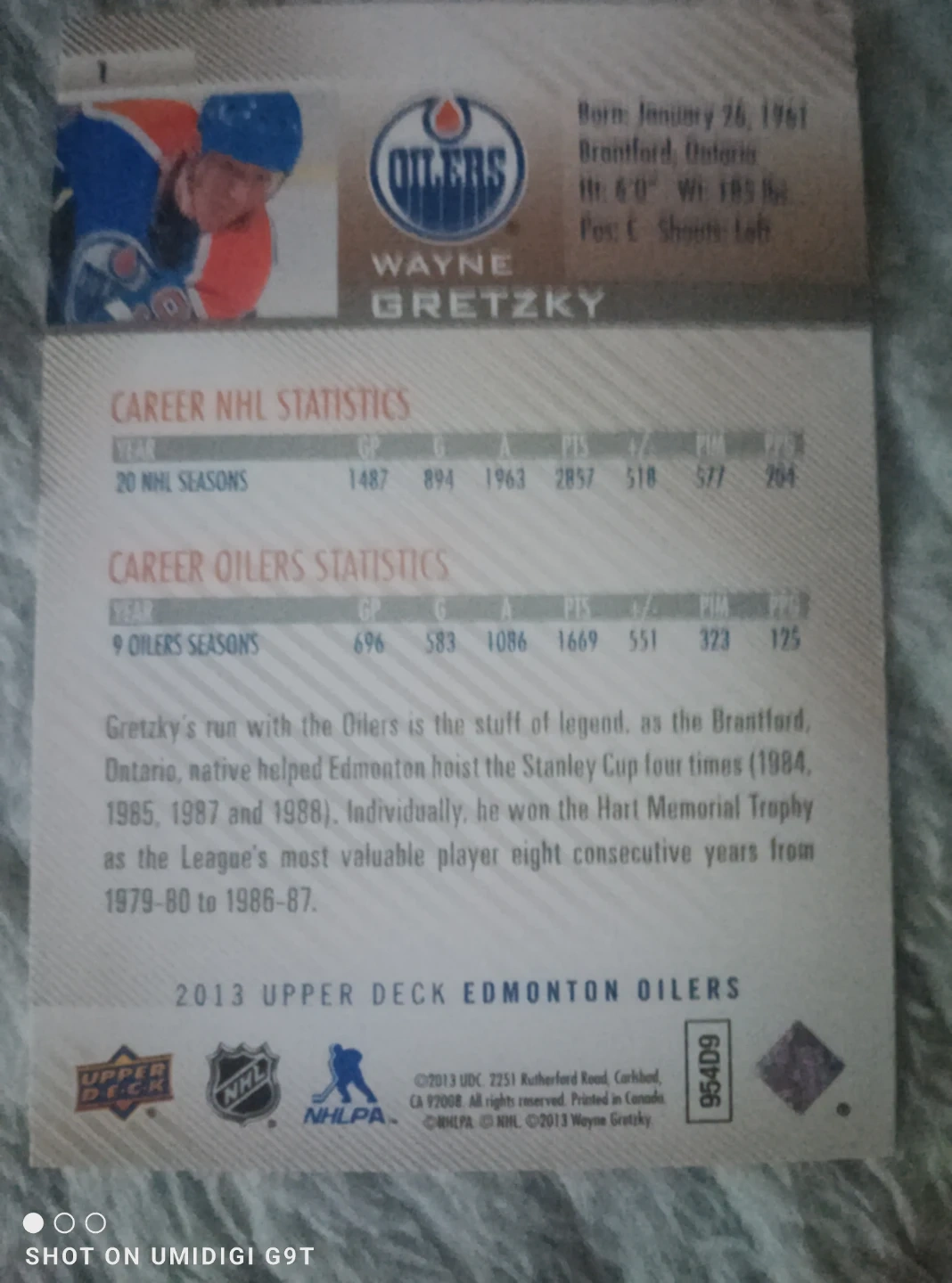 Buy & SellWayne Gretzky Edmonton Oilers Hockey CardWayne Gretzky Edmonton Oilers Hockey Card$50This is a 2013 Upper Deck hockey card featuring Wayne Gretzky. It includes his career NHL and Oilers statistics. The card was printed in Canada.ConditionNewWHERE TO MEETCheck LocationView MapSELLERverifiedKattLakeland Ridge750 reviews0 chats·0 favorites·3 viewsSEND CHAT TO SELLERHi Katt! I’m interested in your listing.Hi Katt! I’m interested in your listing.Get the Karrot app to chatSign In to chat