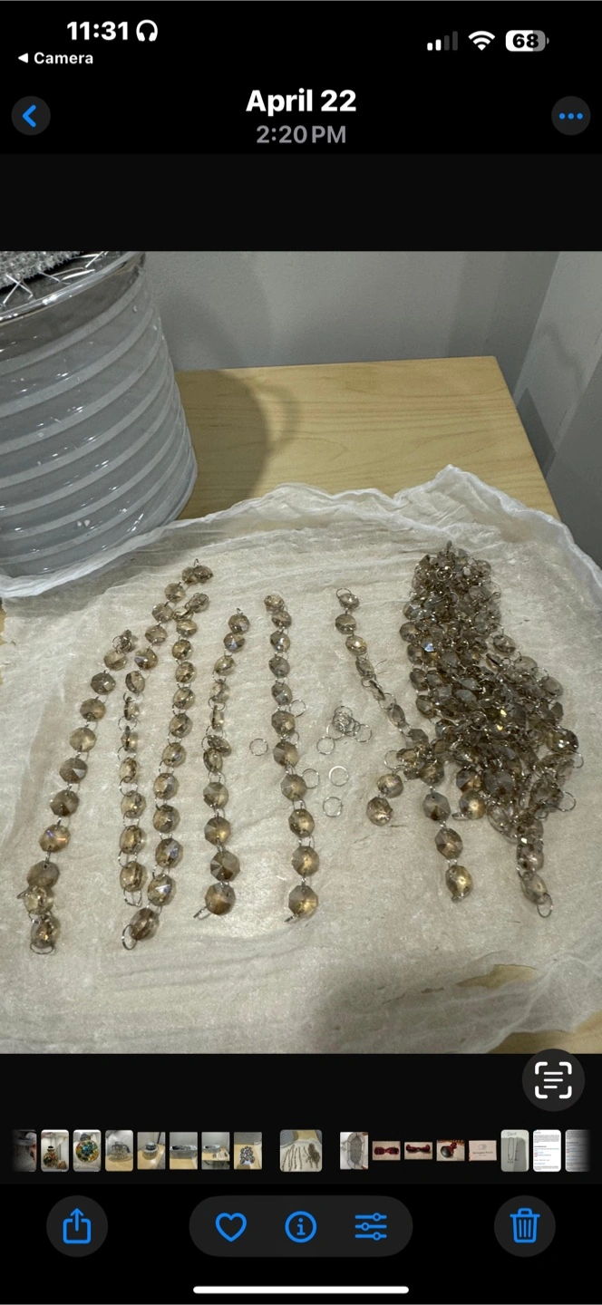 Selling a chandelier with crystals. It needs to be assembled. All the pieces are included. Perfect for adding a touch of elegance to any room