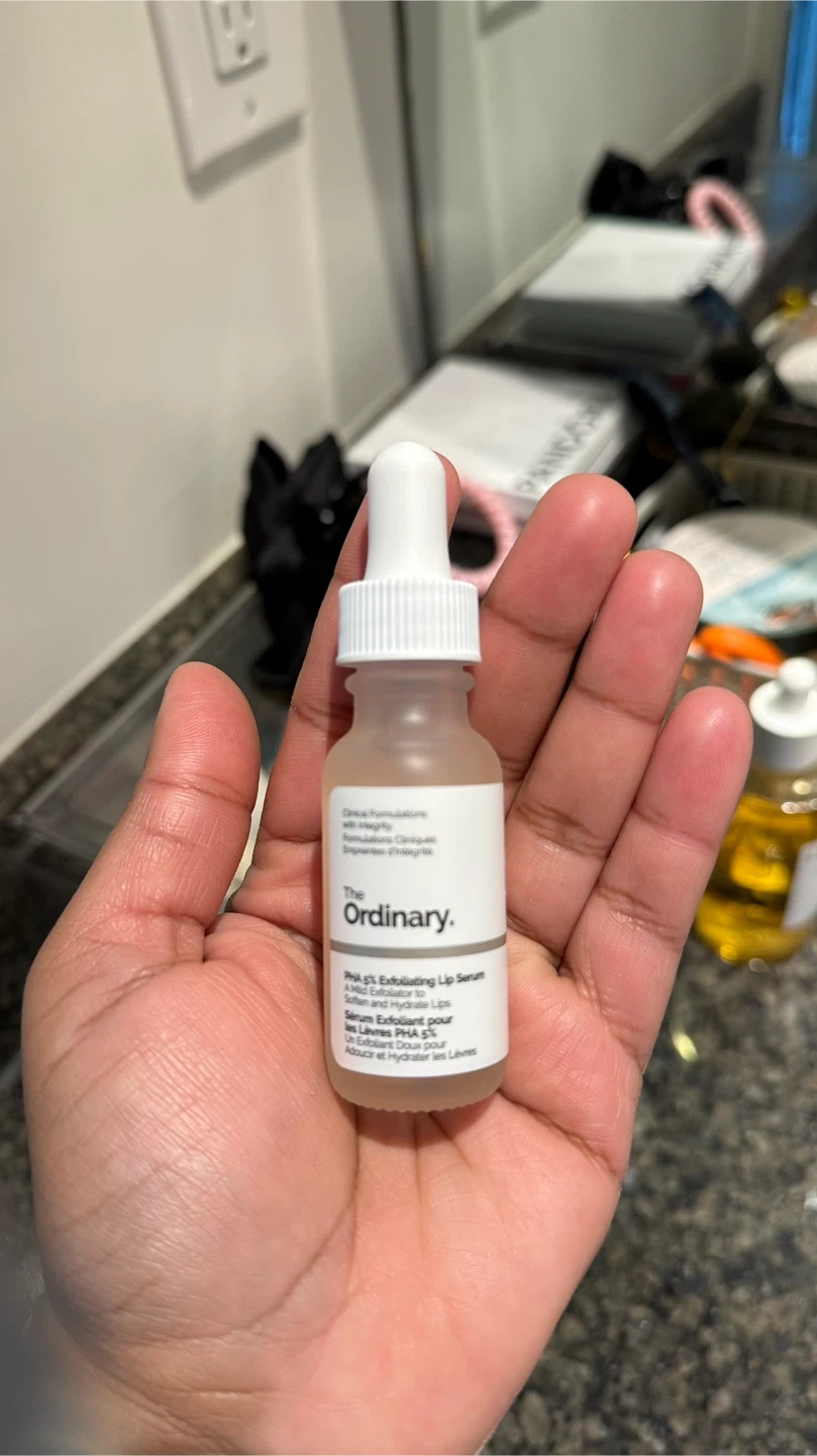 The Ordinary PHA 5% Exfoliating Lip Serum. It's a mild exfoliator to soften and hydrate lips. Use it to gently exfoliate and hydrate your lips.