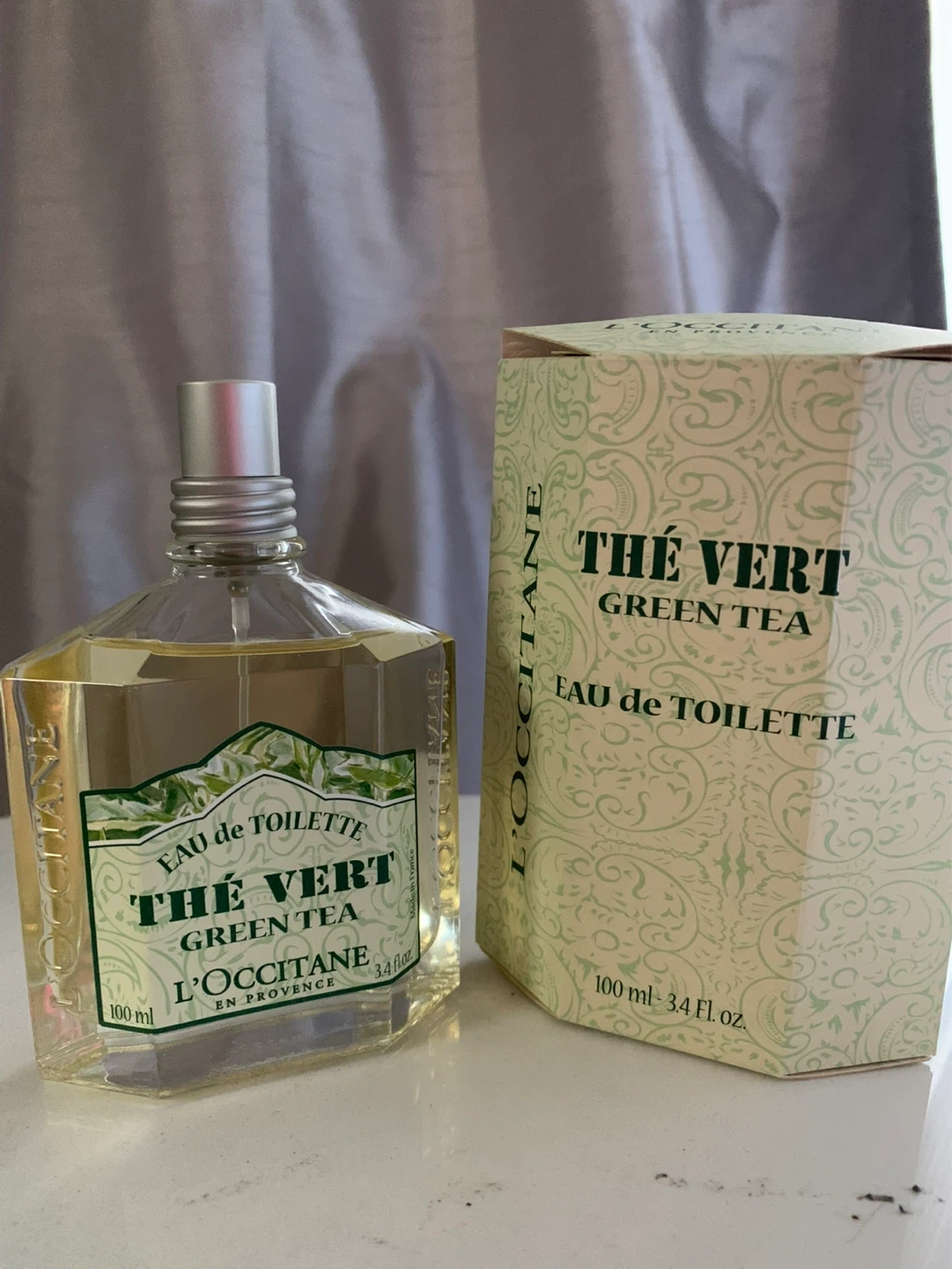 L'Occitane Green Tea Eau de Toilette comes in a 100 ml bottle. It's a refreshing scent with green tea notes. The original box is included. Original version, hard to find, can sell at a premium for a motivated seller, but I just want to make room. Sprayed once to confirm freshness!