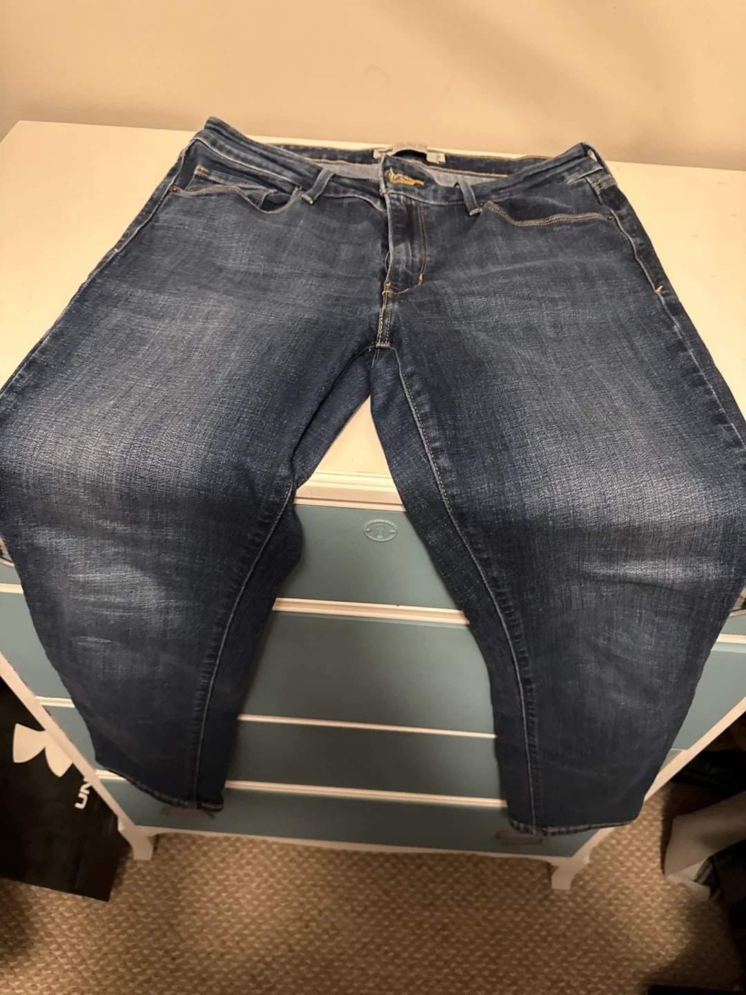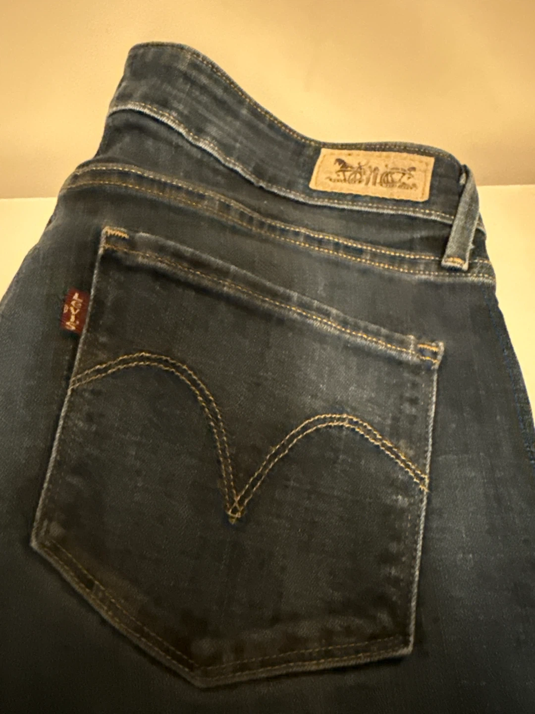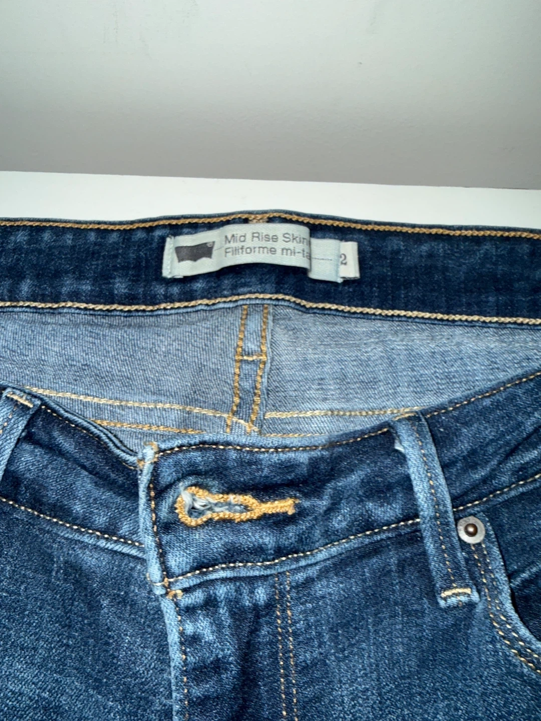 Levi's Mid Rise Skinny jeans in a dark wash. These jeans are size 12. Made from a durable denim blend.
