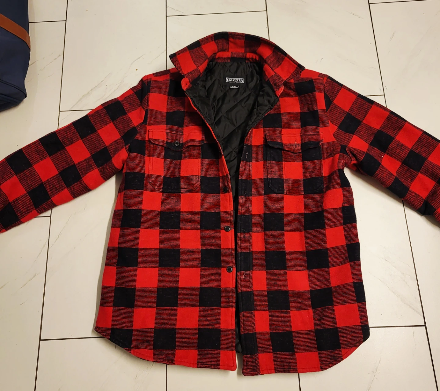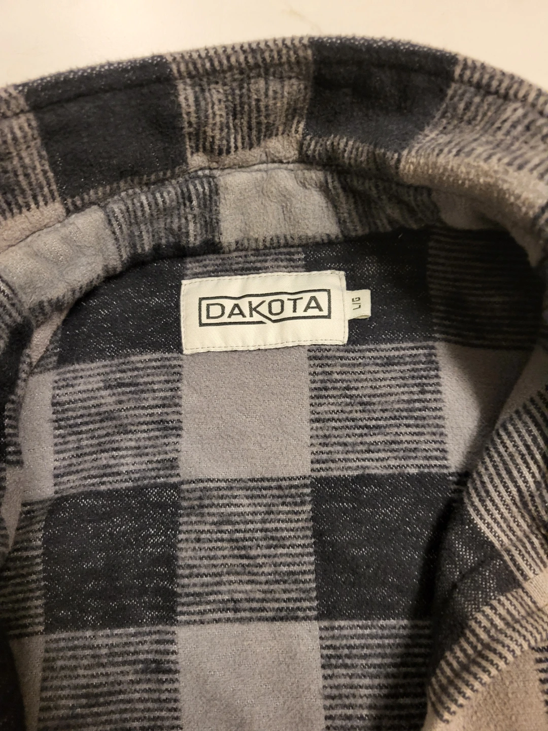 Here's a cozy Dakota flannel shirt in a classic plaid pattern. It's a size large and in great condition. Perfect for layering or wearing on its own!$30 each