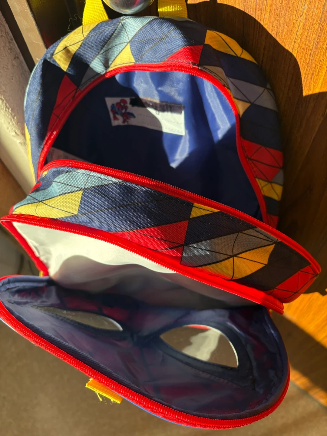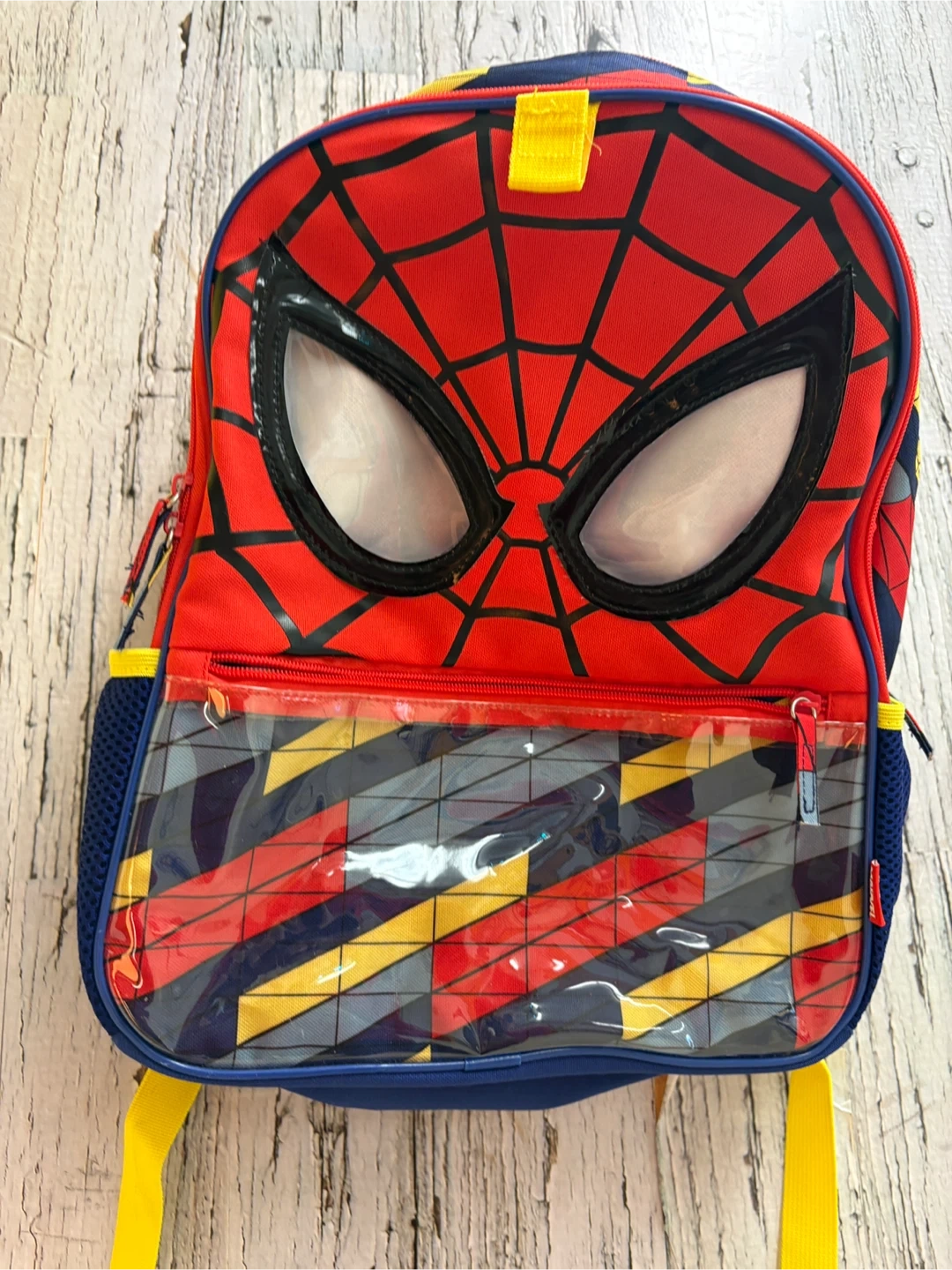 This is a fun Spider-Man themed backpack for kids! It has adjustable shoulder straight and a front zippered pocket. Perfect for carrying school supplies or essentials on the go.