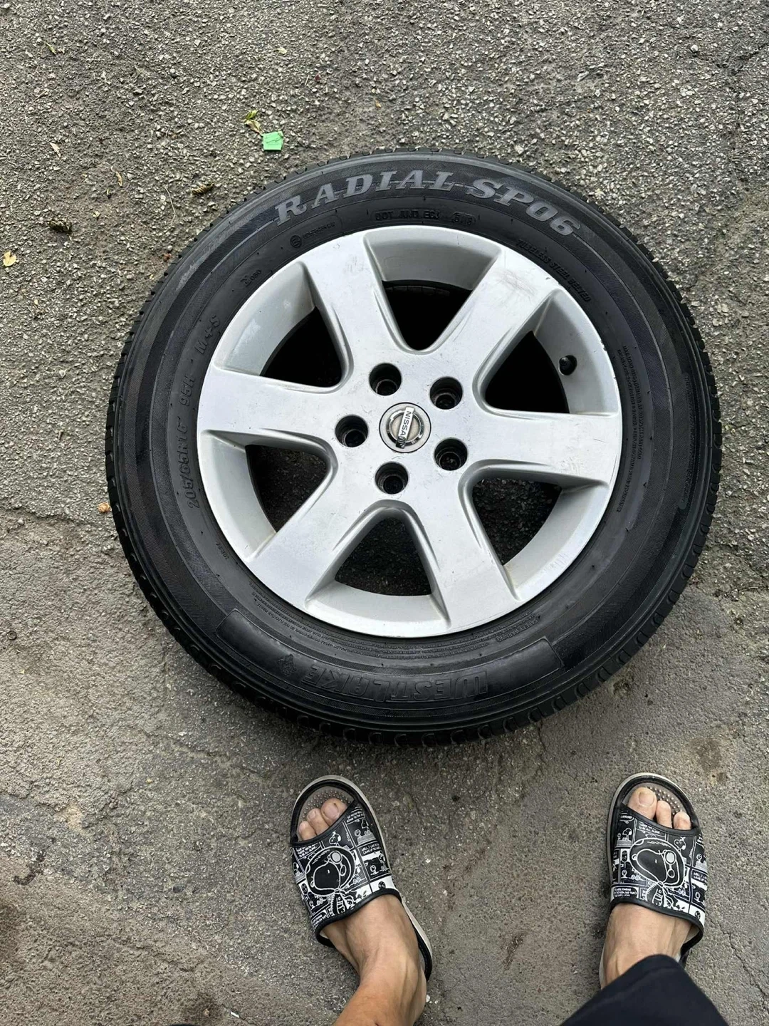 One Nissan tire and rim. Tire size is 205/65R16 with a 95H speed rating. It's a Radial SP06 tire. Great for replacing a damaged wheel! Four All seasons wheels with aluminum rim. Price is negotiable!!