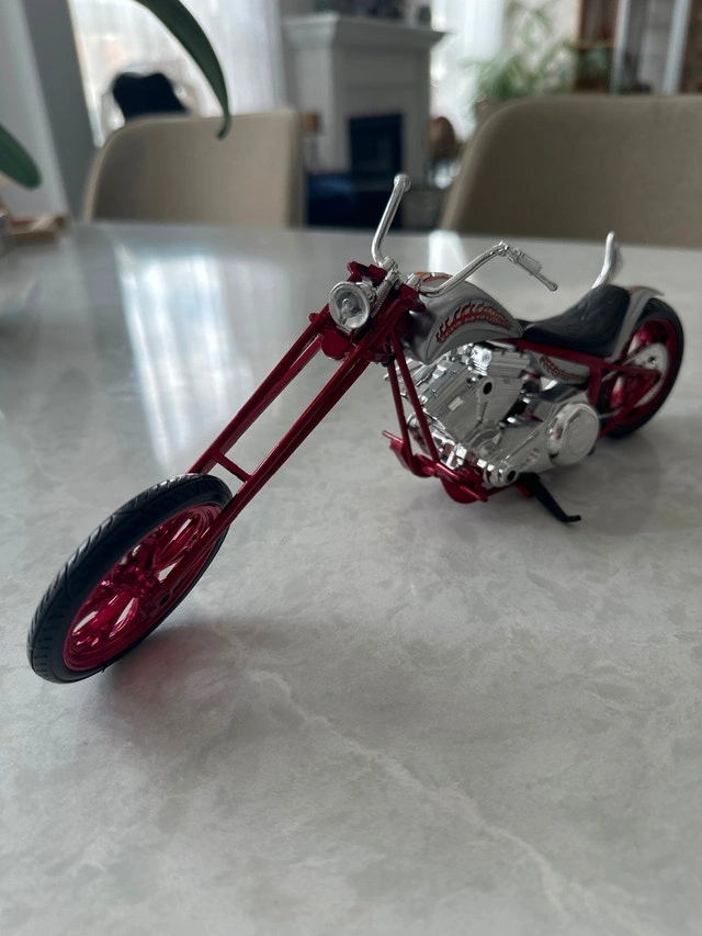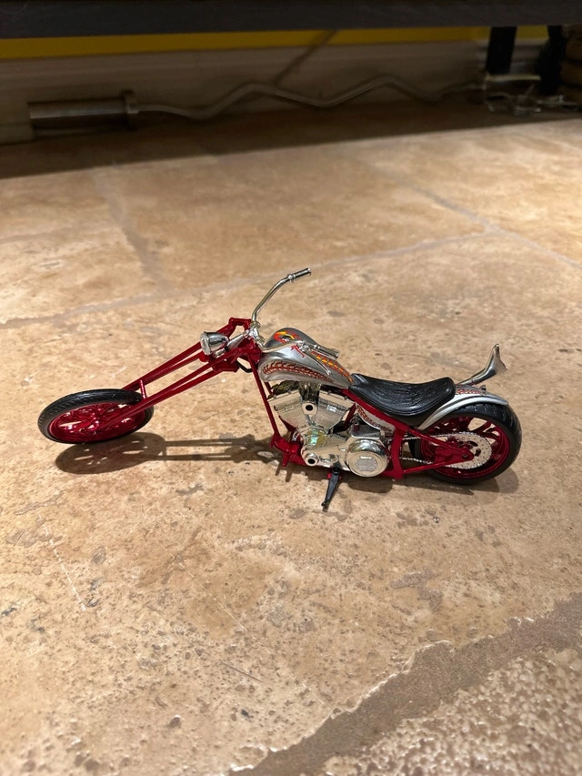 Rare, one of a kind NewRay Custom Red Chopper, 1:12 die-cast model. Condition: Used - Like new. For Sale By: Owner. Cash accepted.