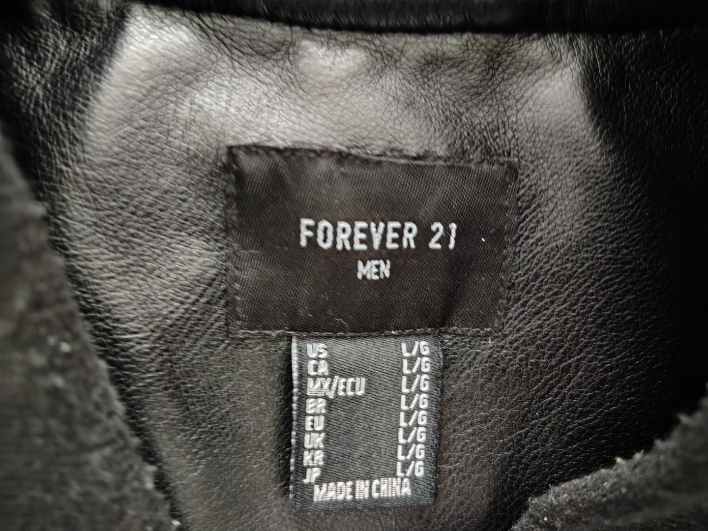 Selling a Forever 21 Men's bomber jacket in size large. It's a sleek black faux leather, perfect for adding a bit of edge to your look! The jacket is in great condition and ready for a new owner. Let me know if you are interested.