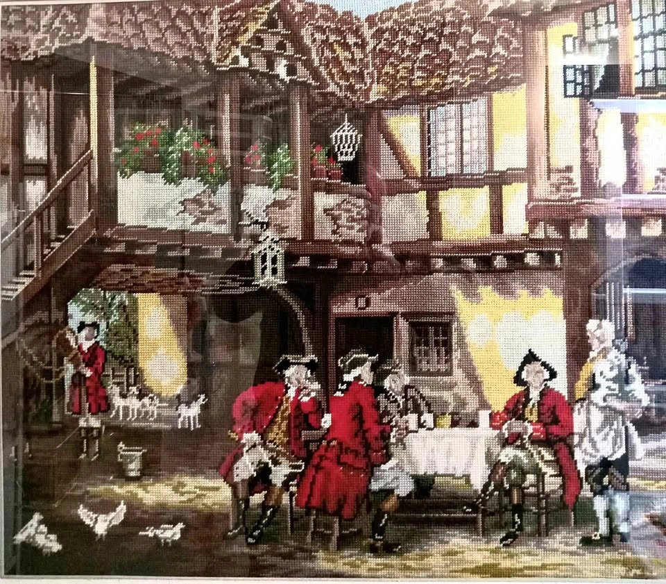 Antique large Victorian needlepoint from London, framed and glass-covered, very detailed, on sale for $65. Let me know if you're interested!