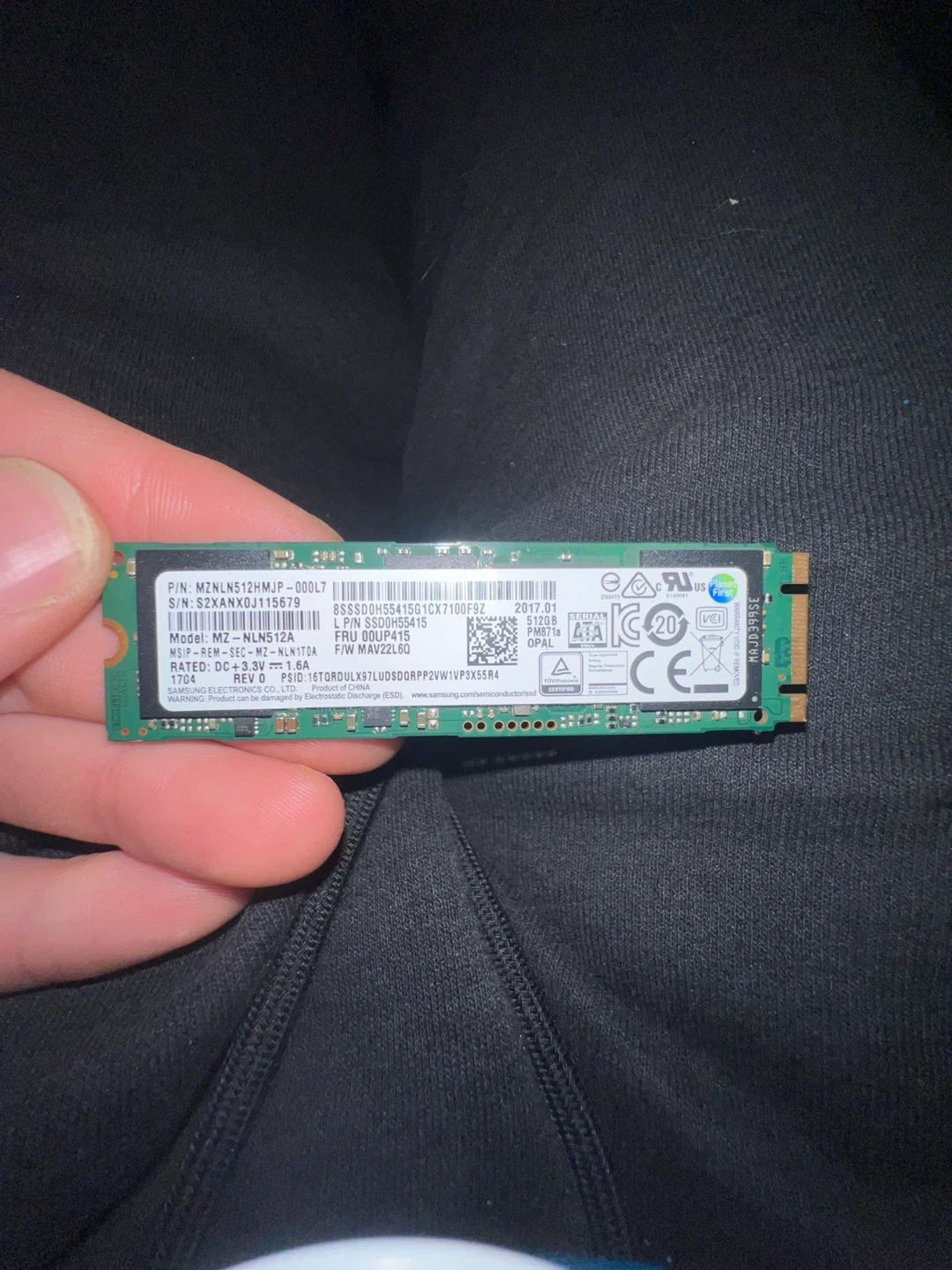 This is a Samsung 512GB M.2 SATA SSD. It's a model MZ-NLN512A, manufactured in 2017. It has a capacity of 512GB. Perfect for boosting computer storage and performance!