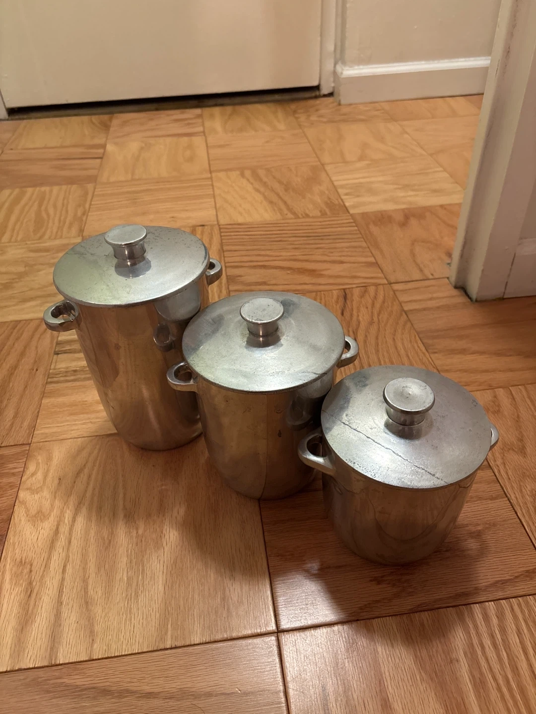 Pottery Barn Silver Pots with Lids (Set of 3)