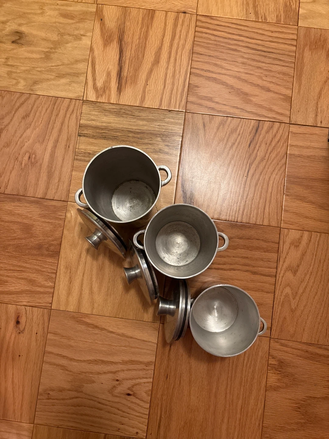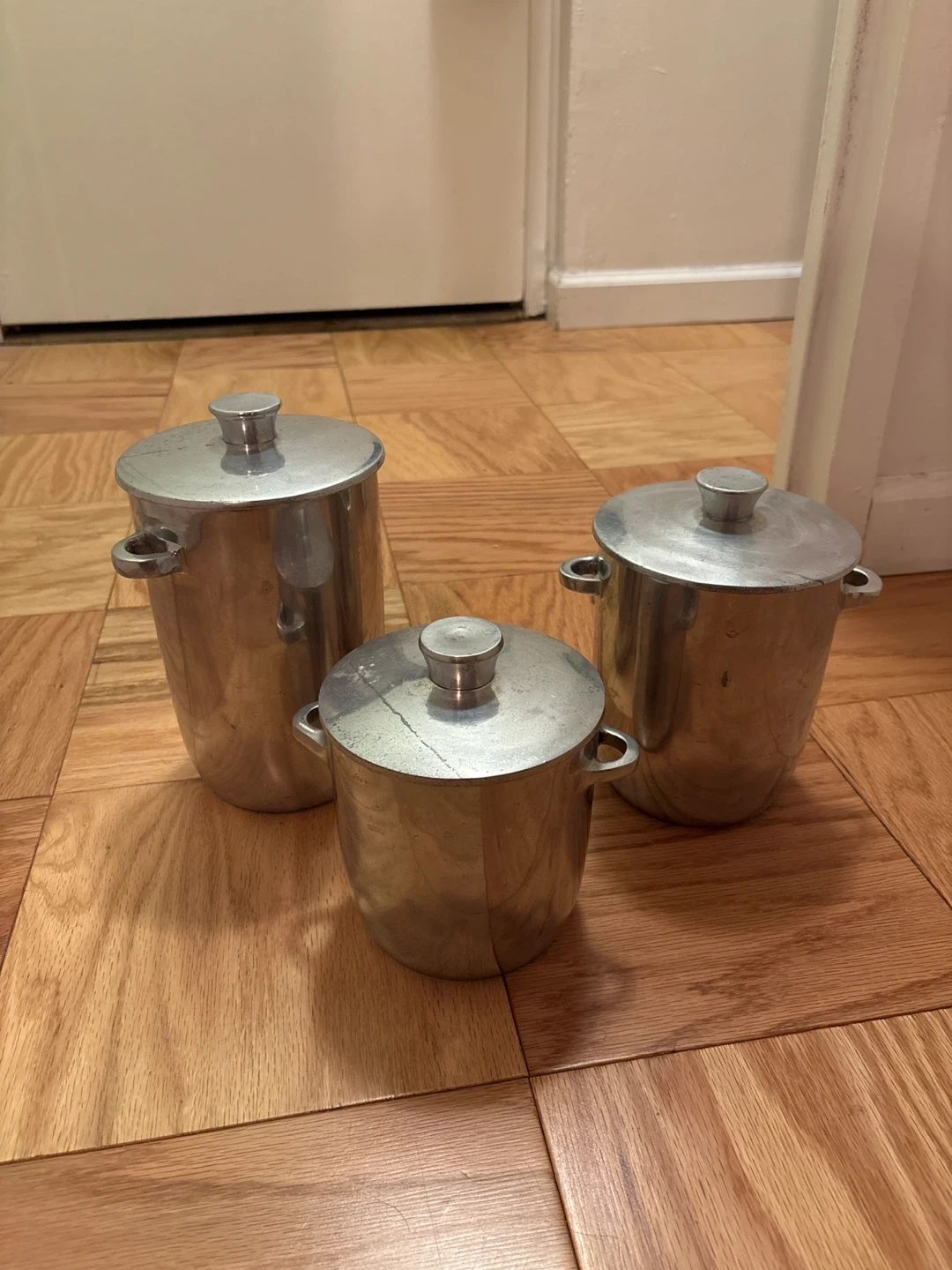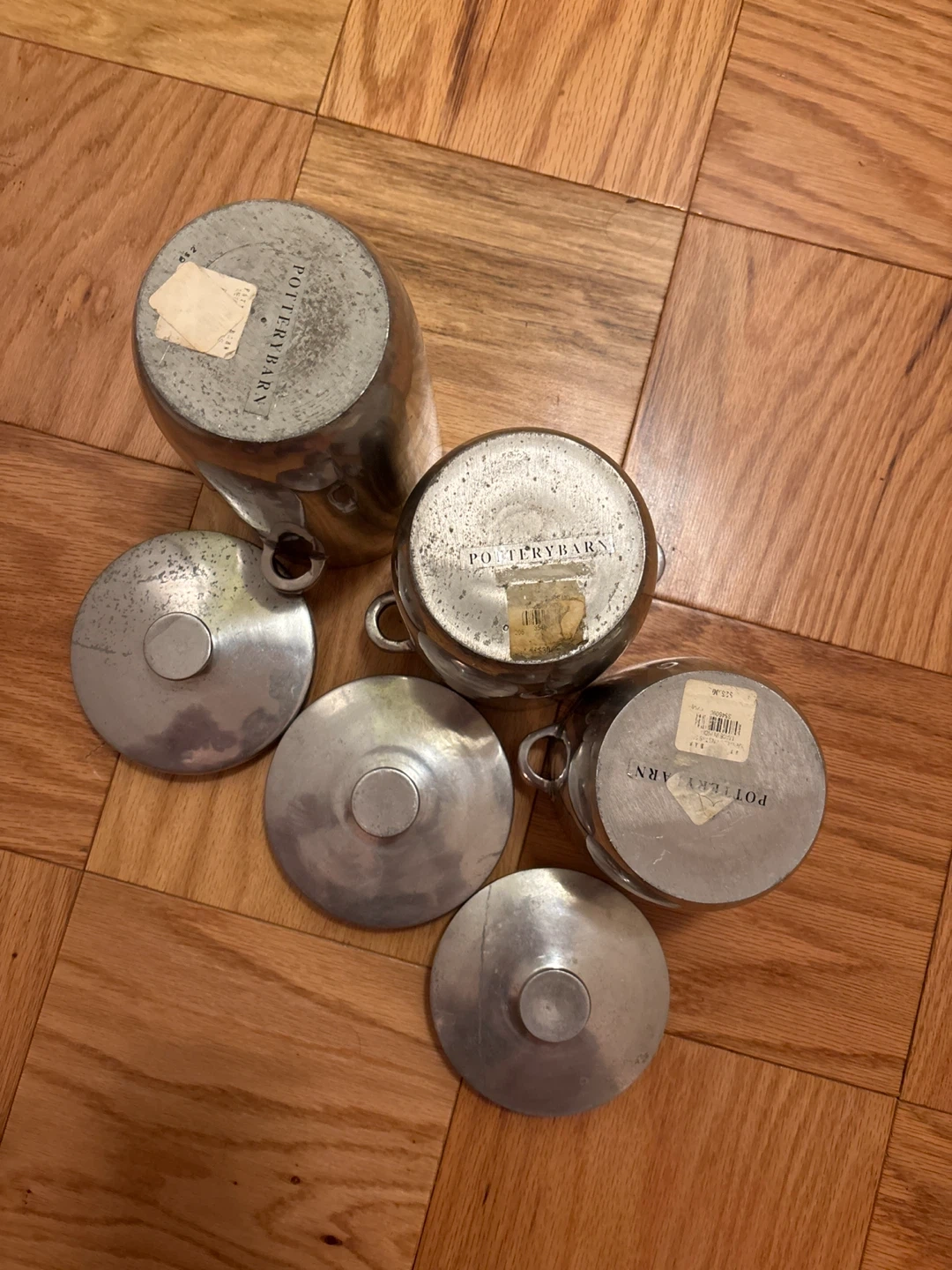 Pottery Barn Silver Pots with Lids (Set of 3)