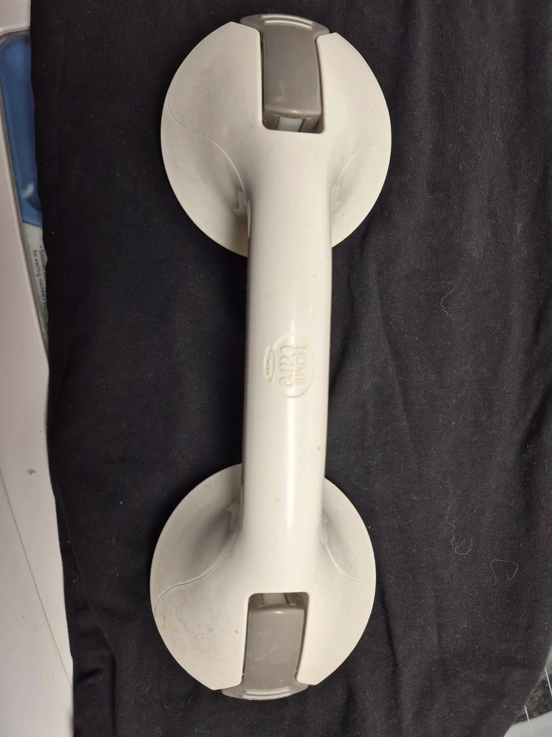 This suction cup grab bar offers temporary support. It attaches to smooth, non-porous surfaces. Suction release levers make it easy to remove. Useful for anyone needing a little extra stability.