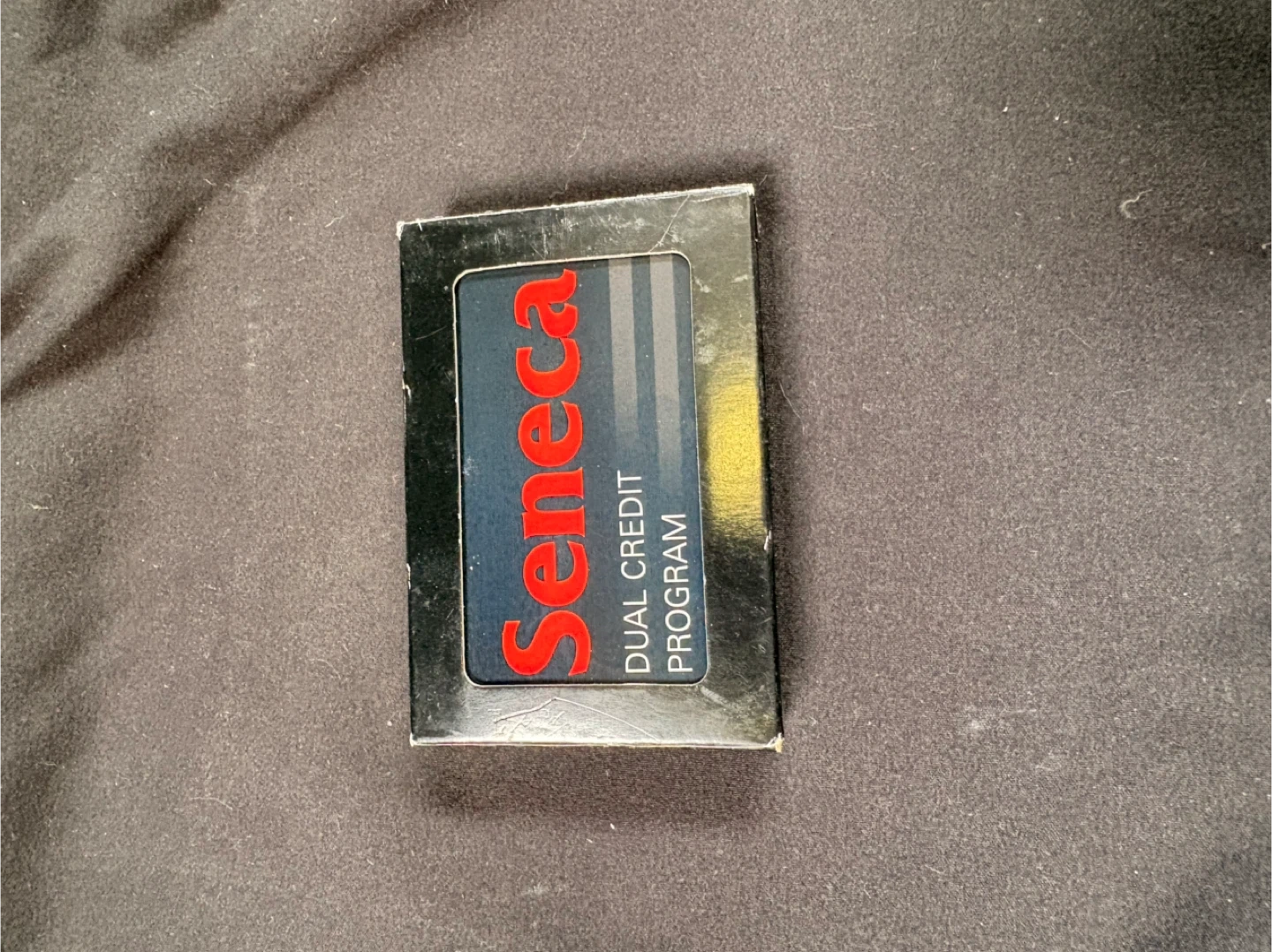 A deck of playing cards from Seneca's Dual Credit Program. Includes one deck of cards in its original case. The cards appear to be standard poker size.