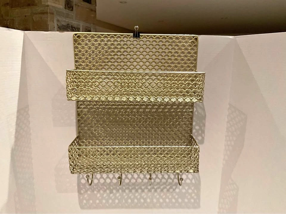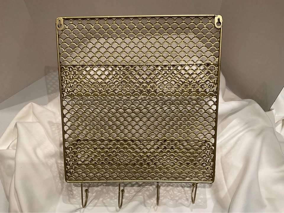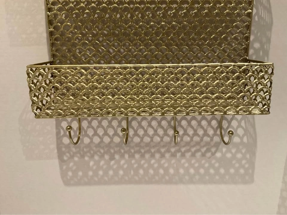 Gold Metal Wall Organizer With Hooks