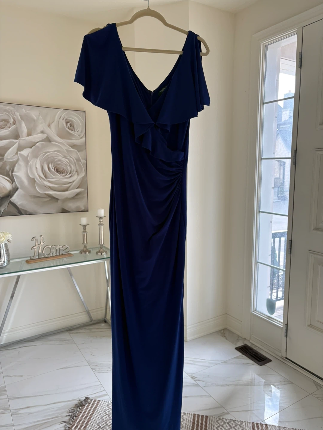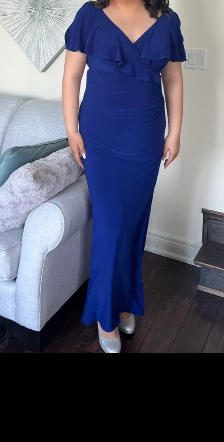 Lauren Ralph Lauren Navy Blue Ruffle Jersey Gown Size 8